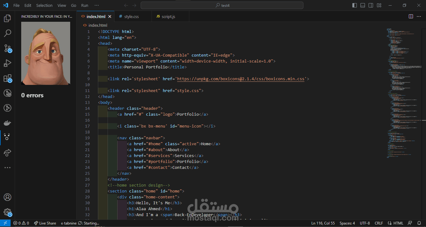 front-end design with a professional design and clear code.
