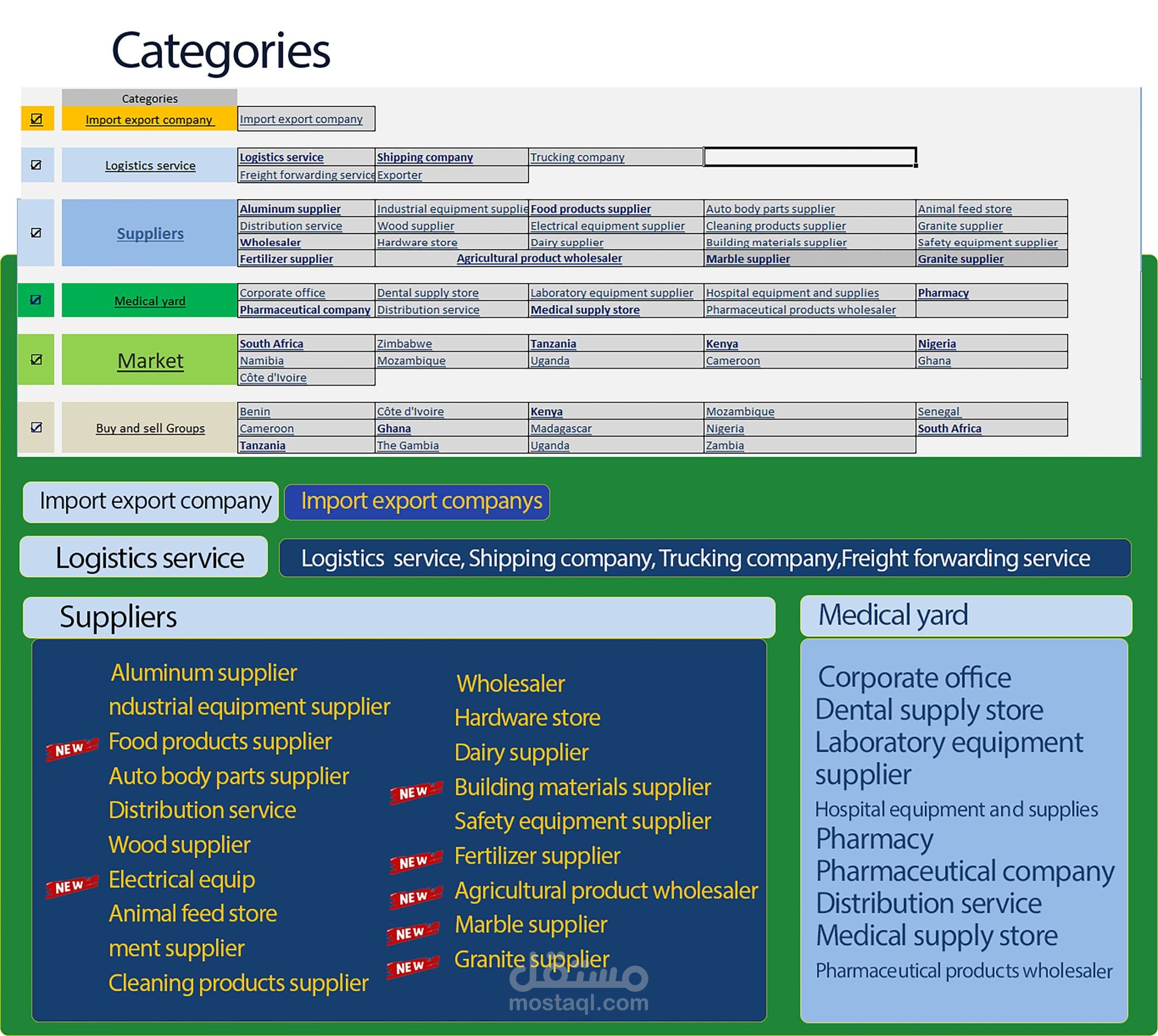 وتضم "شركات استيراد وتصدير ، شركات نقل وخدمات لوجستية ، مجموعة كبيرة من الموردين والمستلزمات الطبية ،