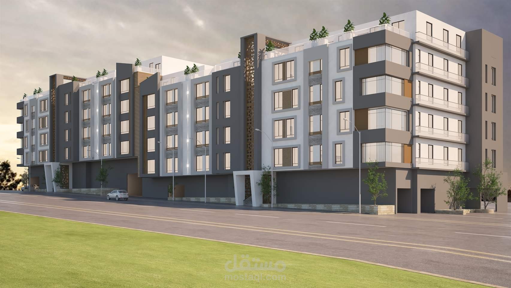 تصميم واجهة خارجيه لعماره سكنيه على الطراز المودرن باستخدام احدث برامج التصميم الحديثه