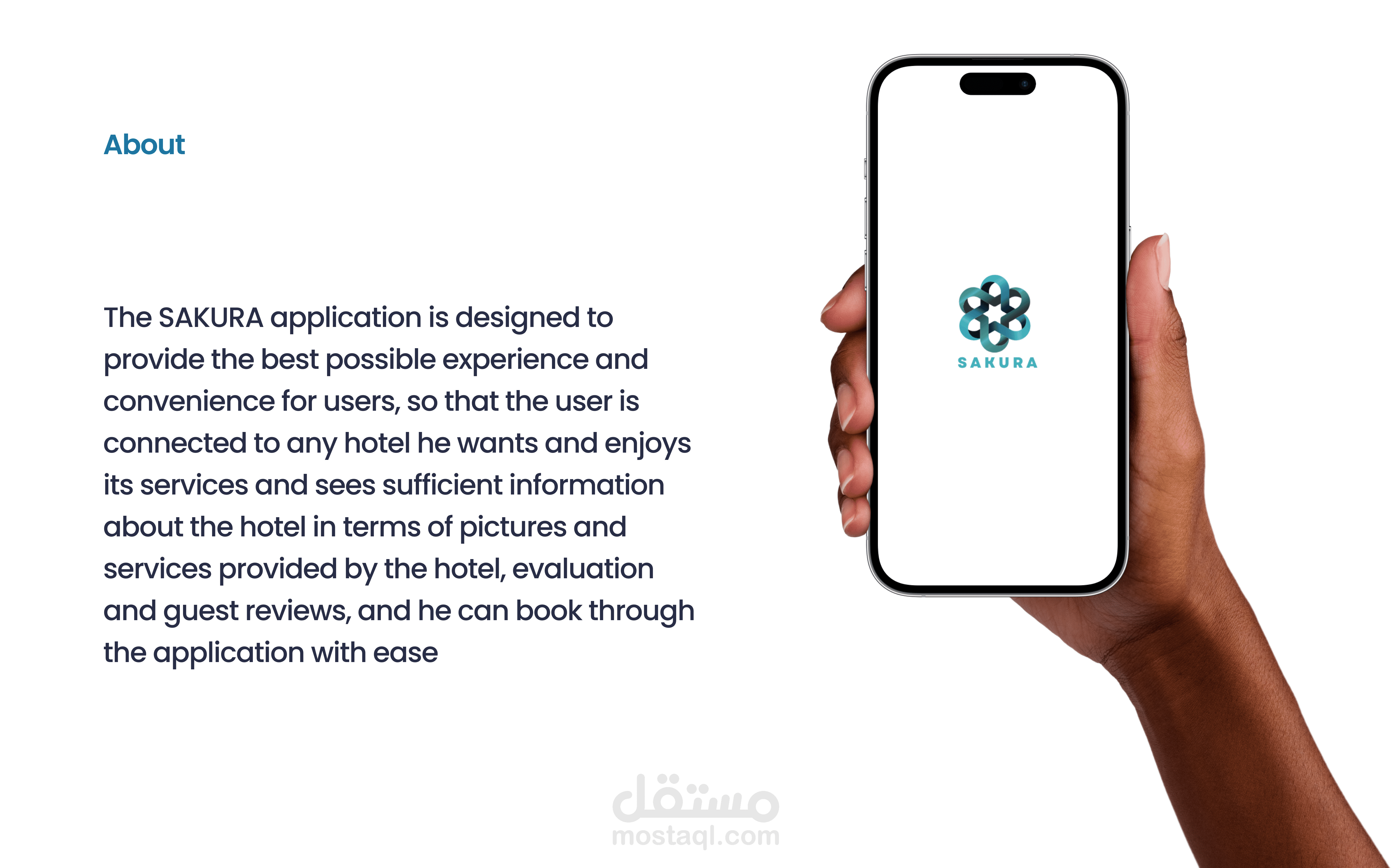 تم تصميم تطبيق SAKURA لتوفير أفضل تجربة ممكنة وراحة للمستخدمين ، بحيث يكون المستخدم على اتصال بأي فندق يريده ويستمتع بخدماته ويرى معلومات كافية عن الفندق من حيث الصور والخدمات التي يقدمها الفندق ، التقييم ومراجعات النزلاء ويمكنه الحجز من خلال التطبيق بكل سهولة