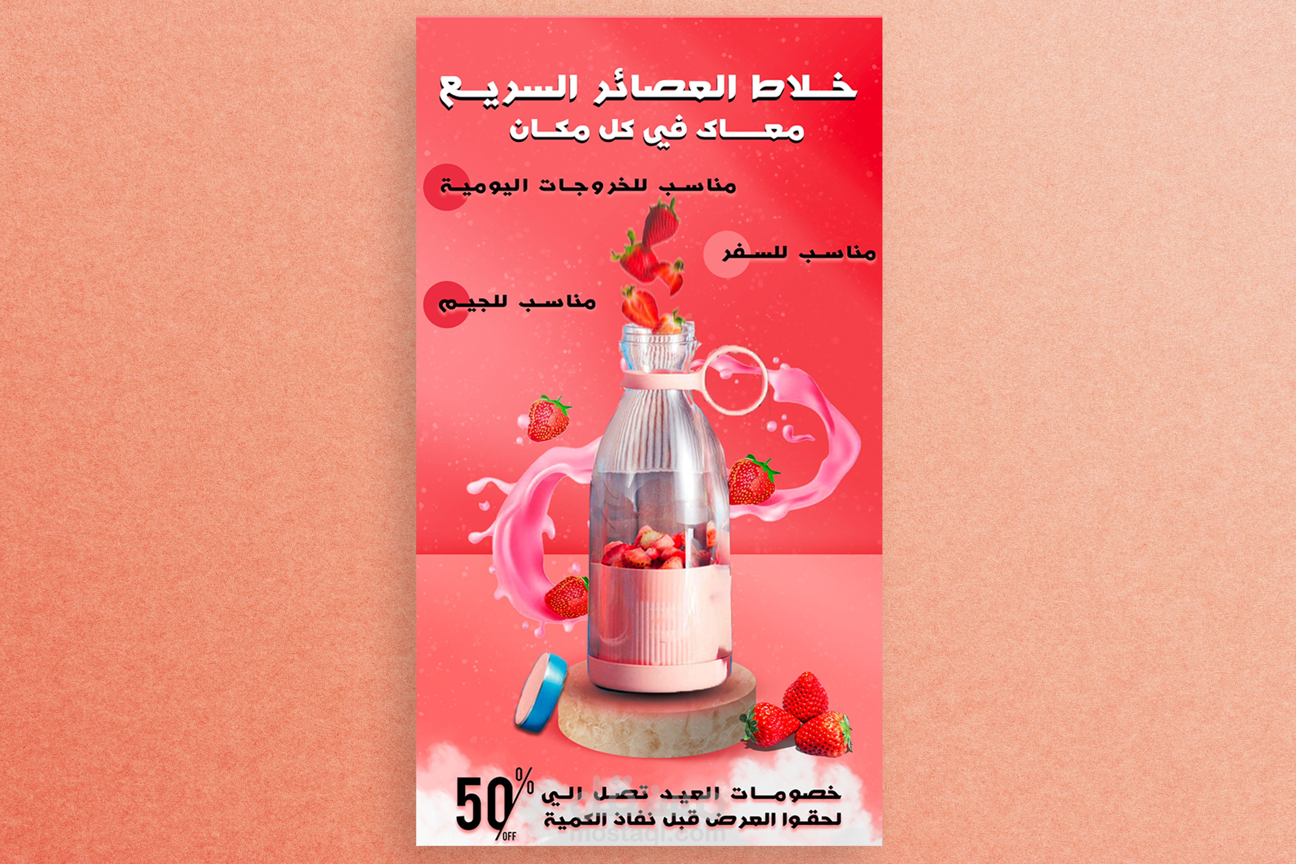 بنر سناب شات لمنتج خلاط عصائر سريع تم البحث عن صور المنتج وتعديلها والبحث عن مميزاته وتم تصميمه من خلال الفوتوشوب بالكامل