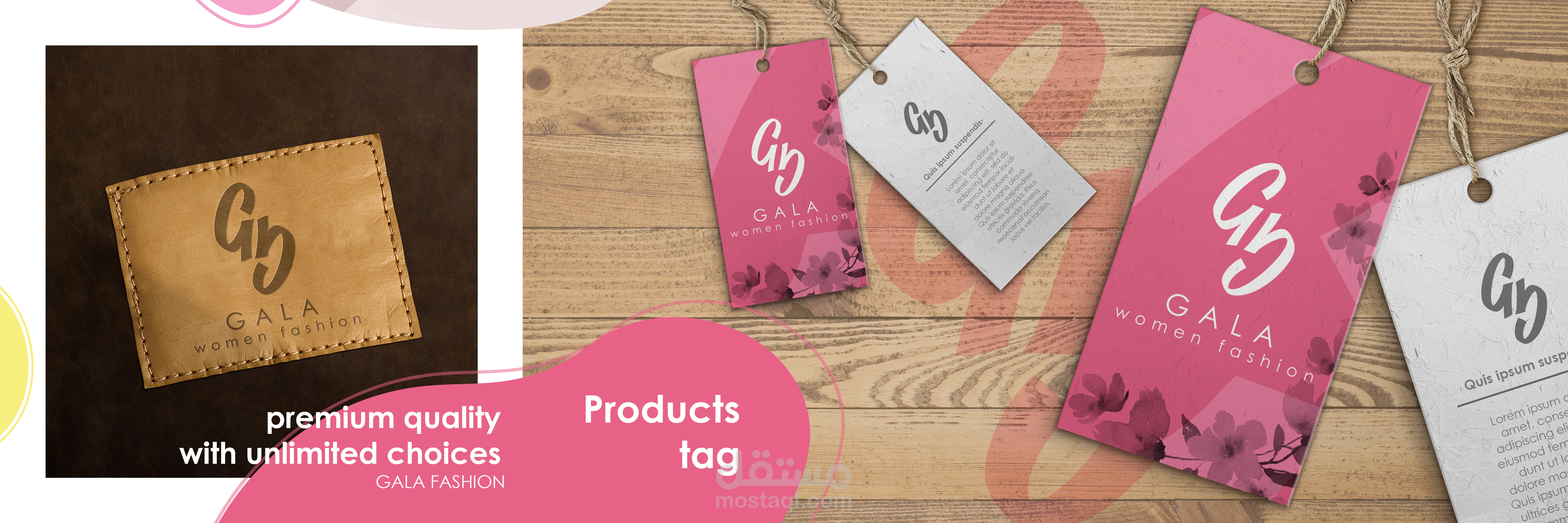 تصميم هوية بصرية لمتجر ألبسة وإكسسوارات نسائية، بالإضافة إلى التغليف، والتصاميم البصرية داخل المتجر وعلى الواجهات