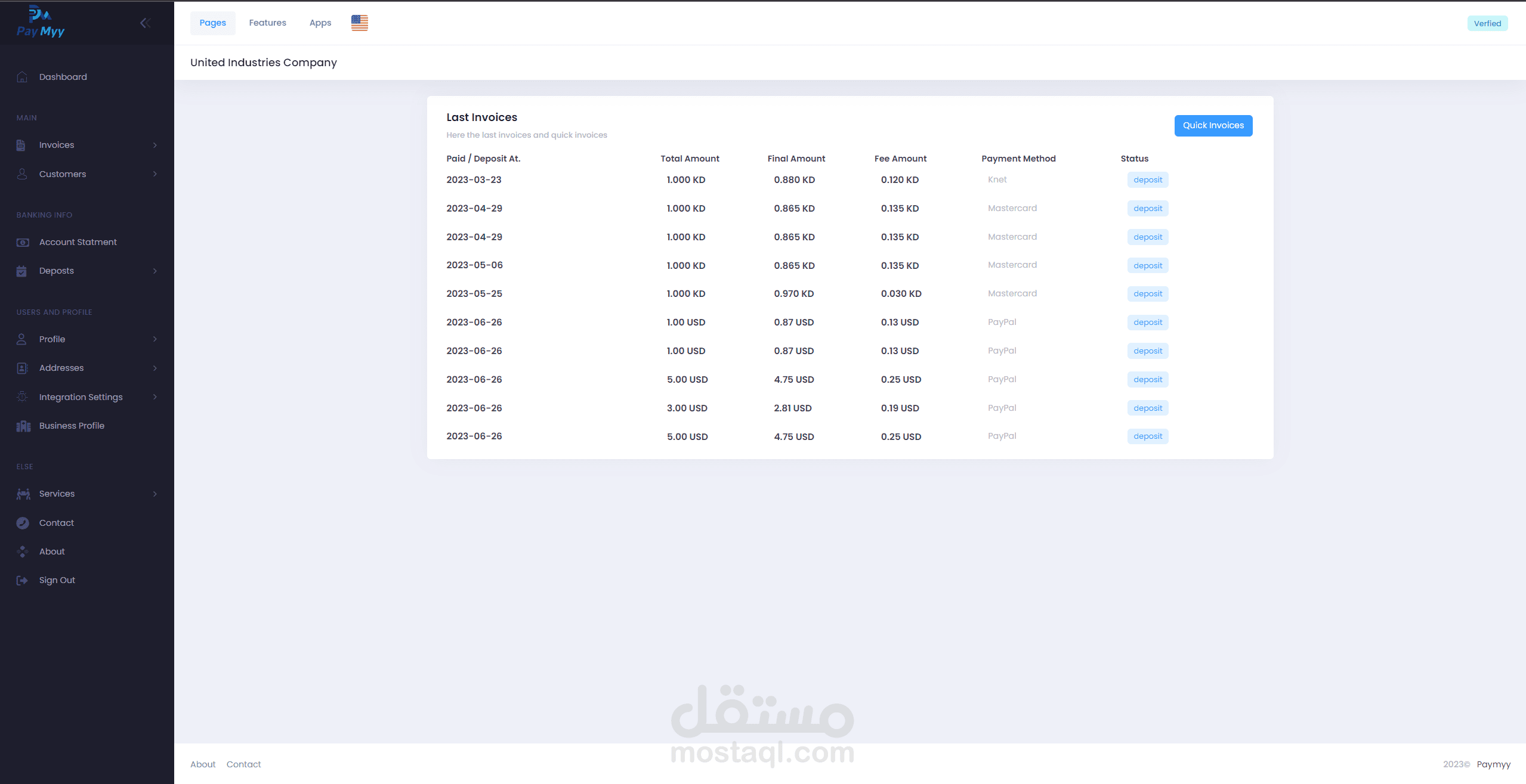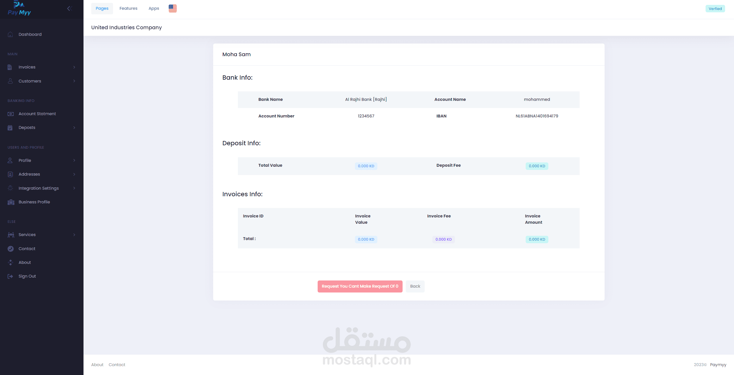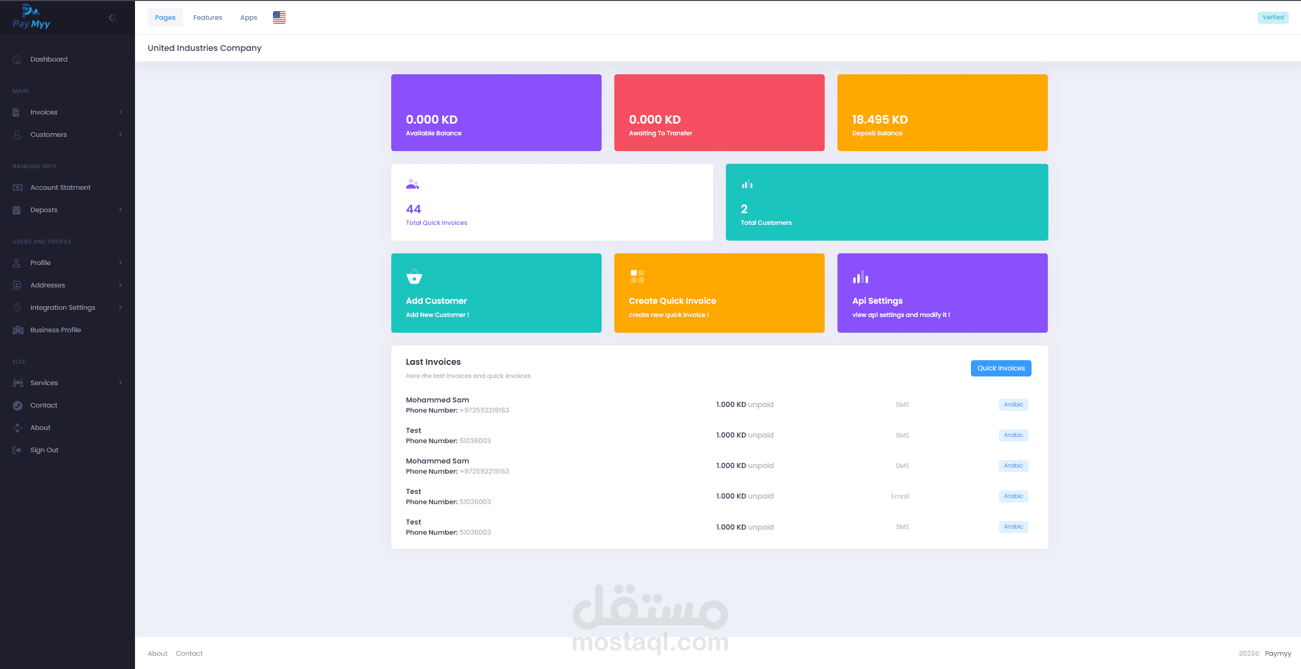 نظام PayMyy للمحفظة الإلكترونية والفواتير هو تطبيق ويب قوي تم بناؤه باستخدام إطار العمل Laravel، وتم تصميمه لتوفير حلول دفع رقمية سلسة وآمنة للأفراد والشركات. توفر هذه المنصة الغنية بالميزات مجموعة شاملة من الوظائف، بما في ذلك إدارة المحفظة الإلكترونية وإصدار الفواتير وطرق الدفع المتنوعة، بهدف تبسيط المعاملات المالية.