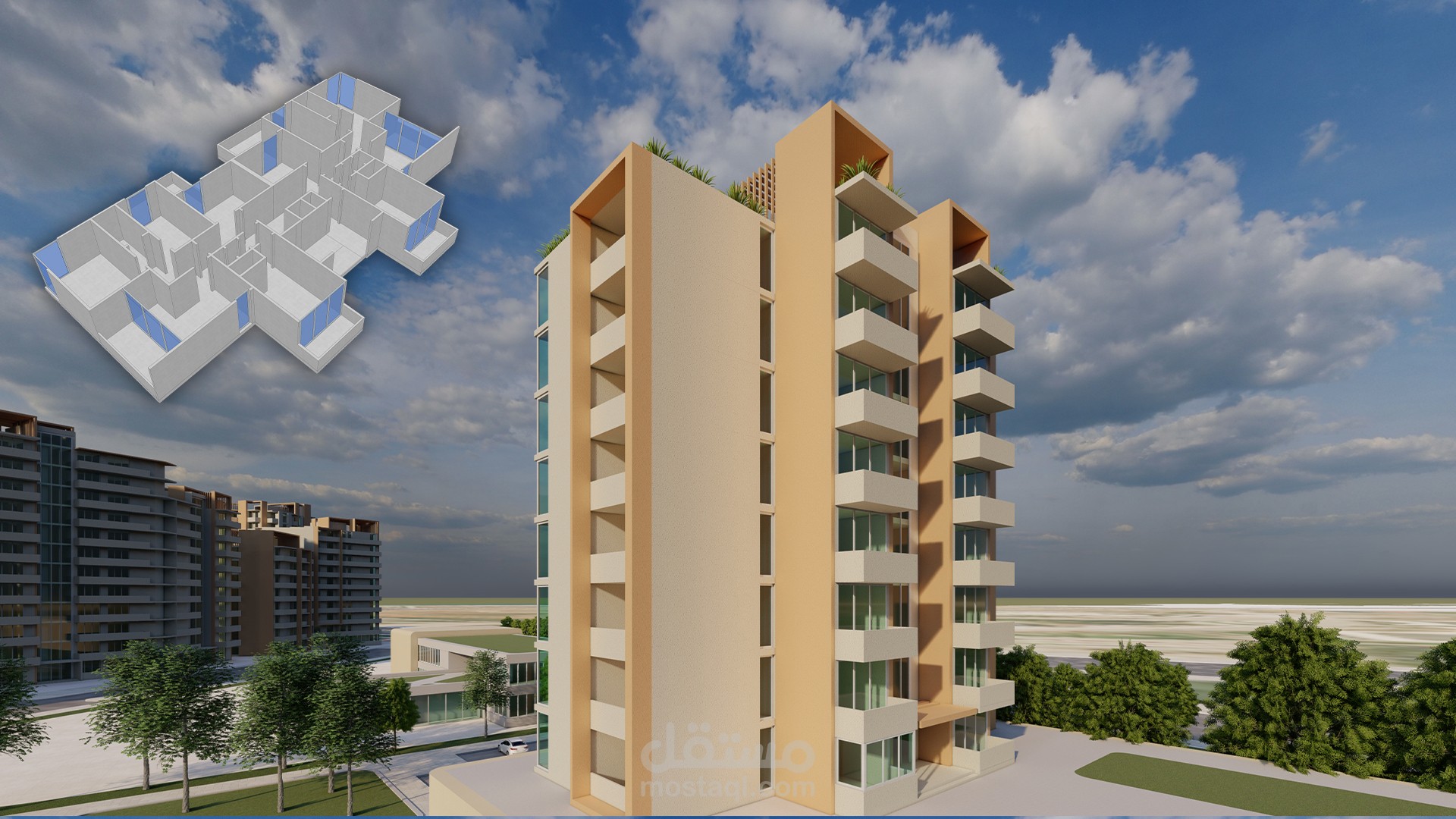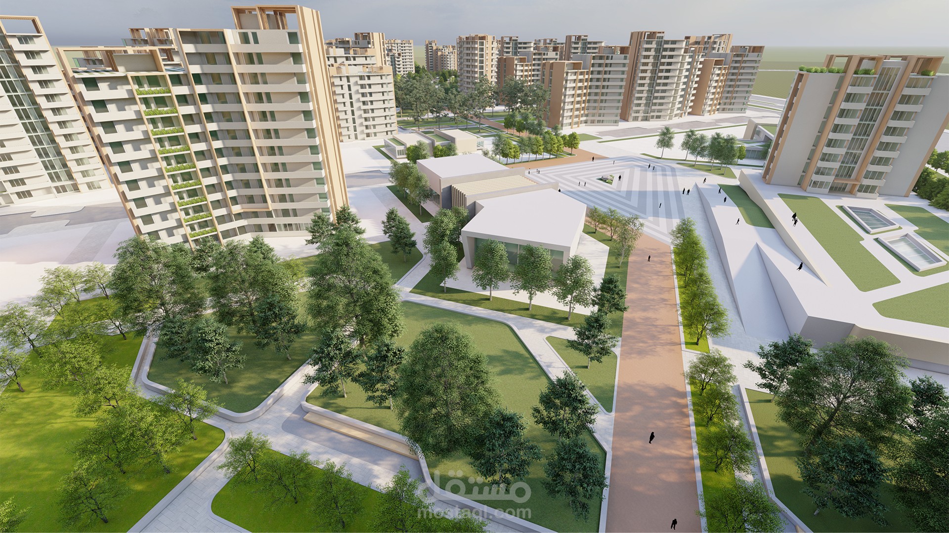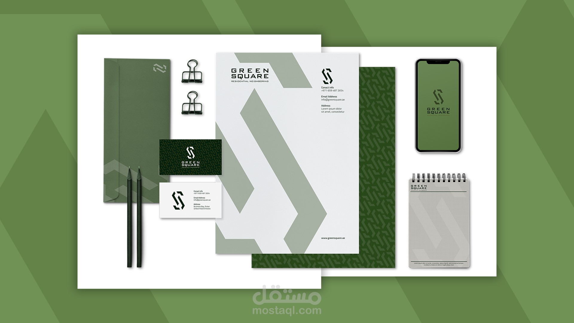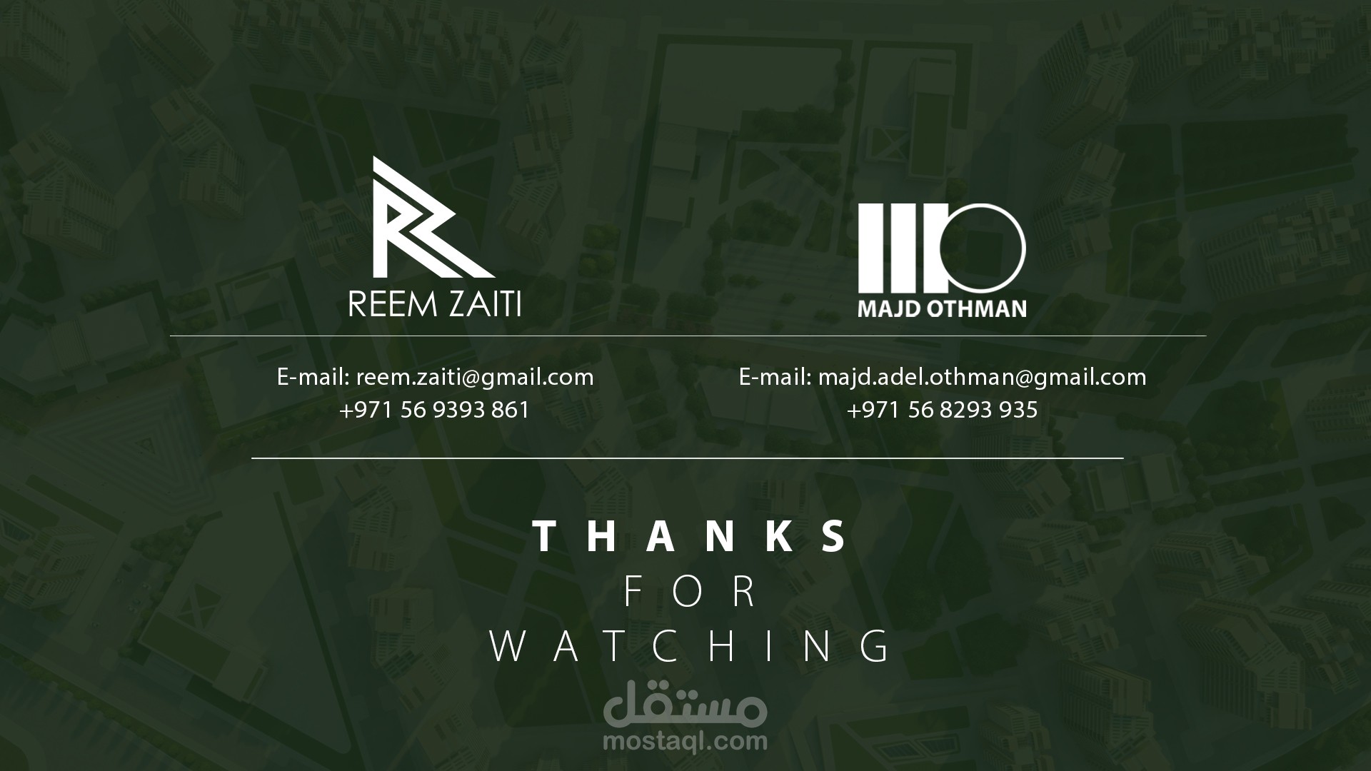 تصميم الهوية البصرية لمشروع تخرجي من كلية الهندسة المعمارية، مشروع الساحة الخضراء، بالإضافة طبعا لتصميم المشروع بحد ذاته كدراسات معمارية وإنشائية وتخطيطية، بالإضافة إلى تصميم النماذج ثلاثية الأبعاد بالتعاون مع زوجتي الجميلة، وشريكتي في المشروع المهندسة ريم زيتي.