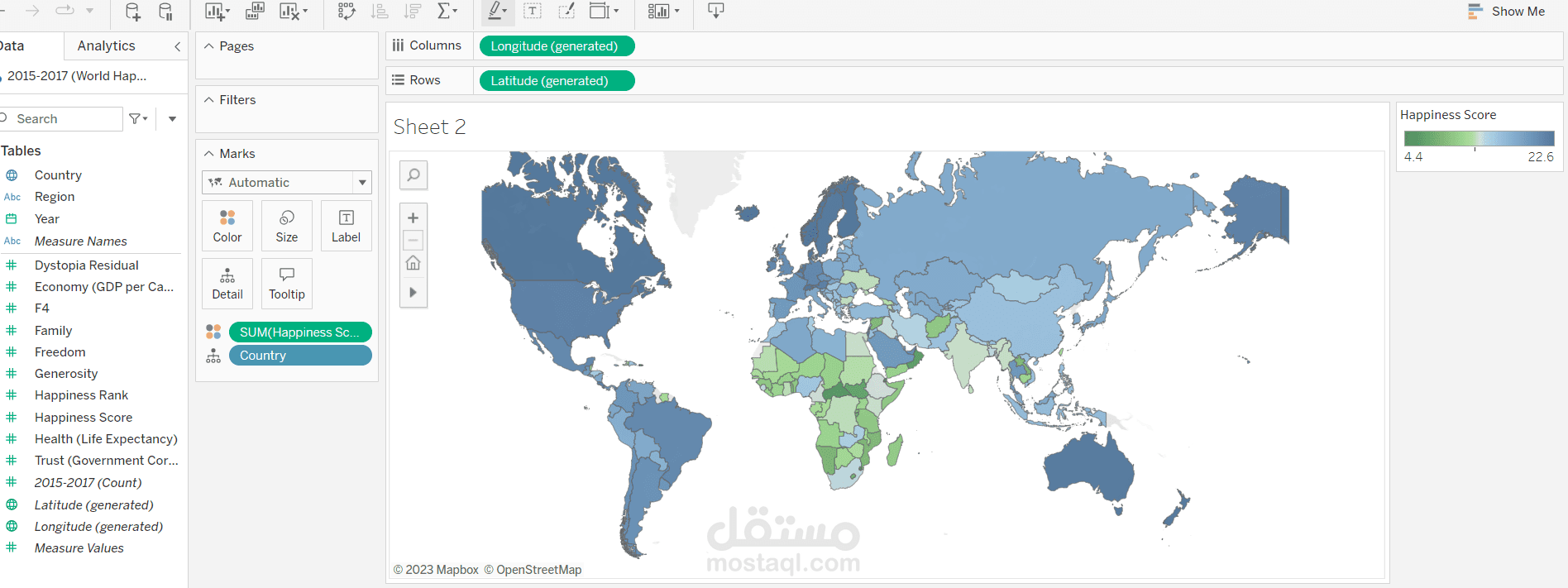 label the happiness score on the map