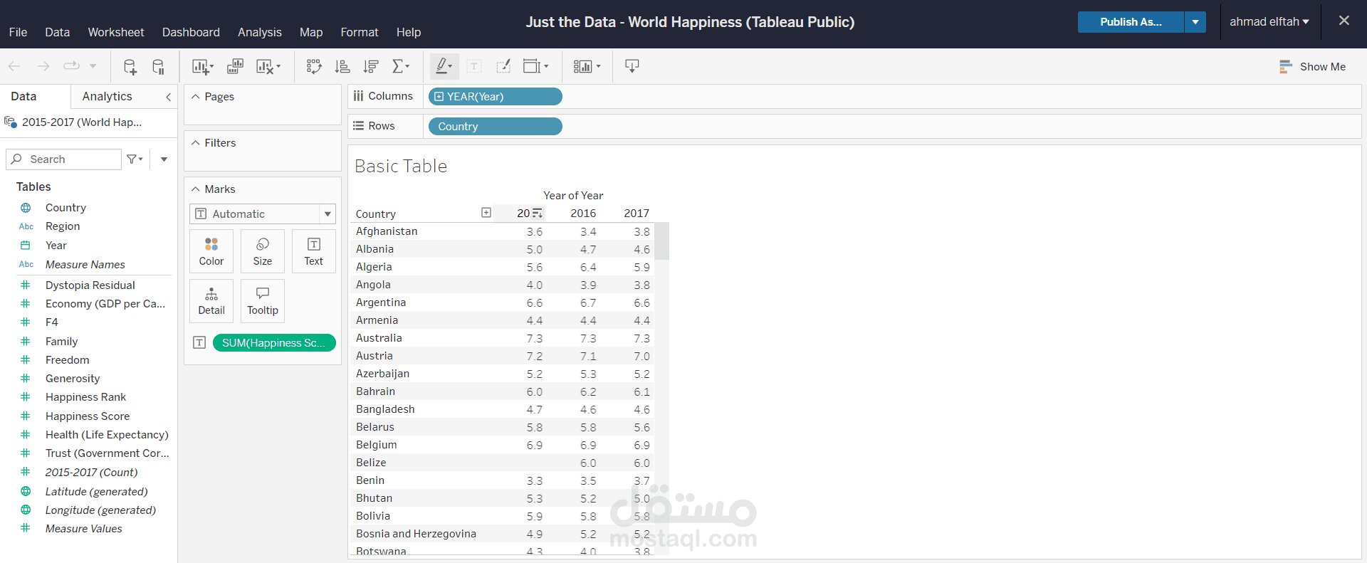 data viz using table in this file