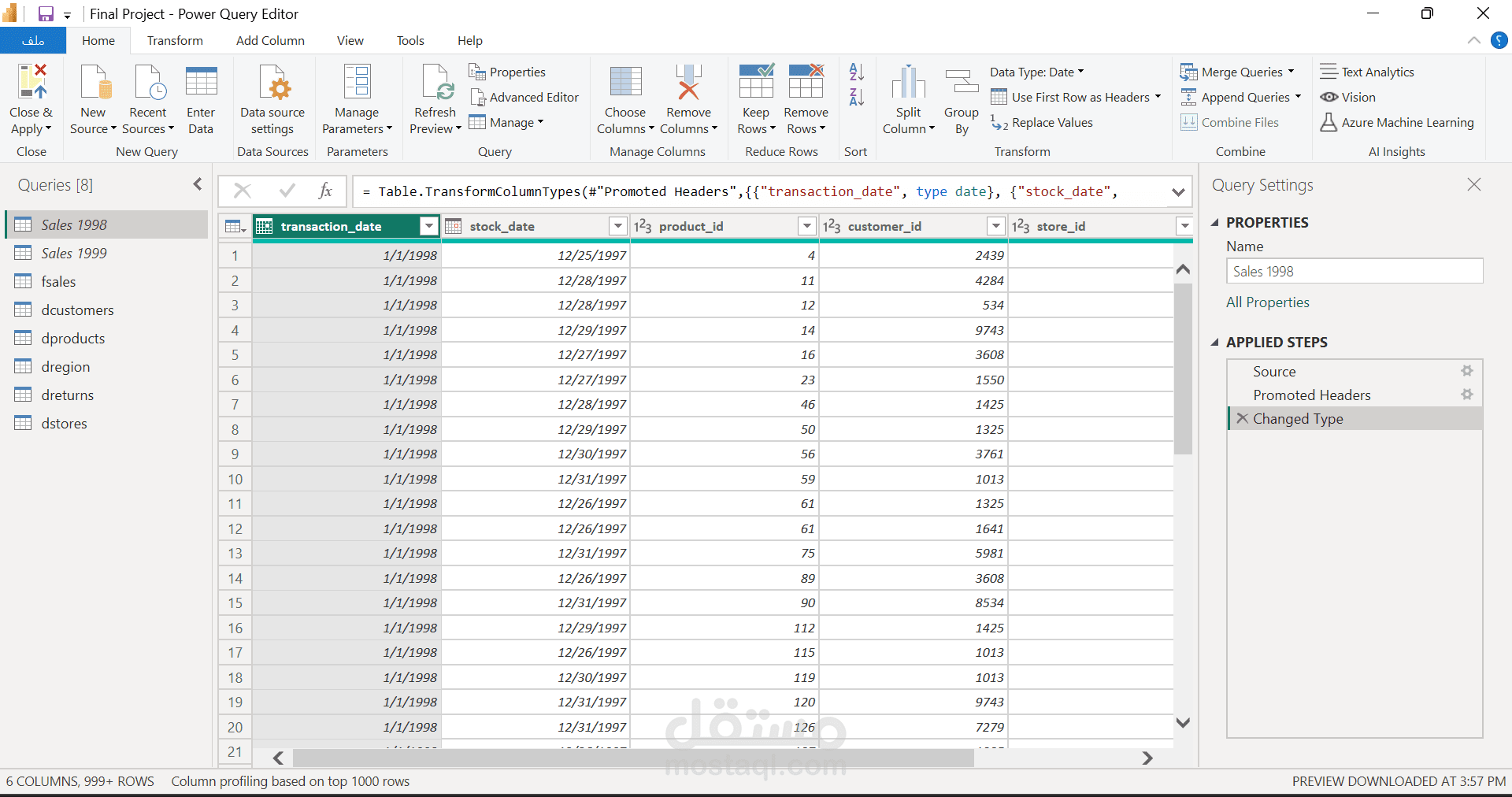 Food Mart Data , First Step Was Extractind Data From Excel .