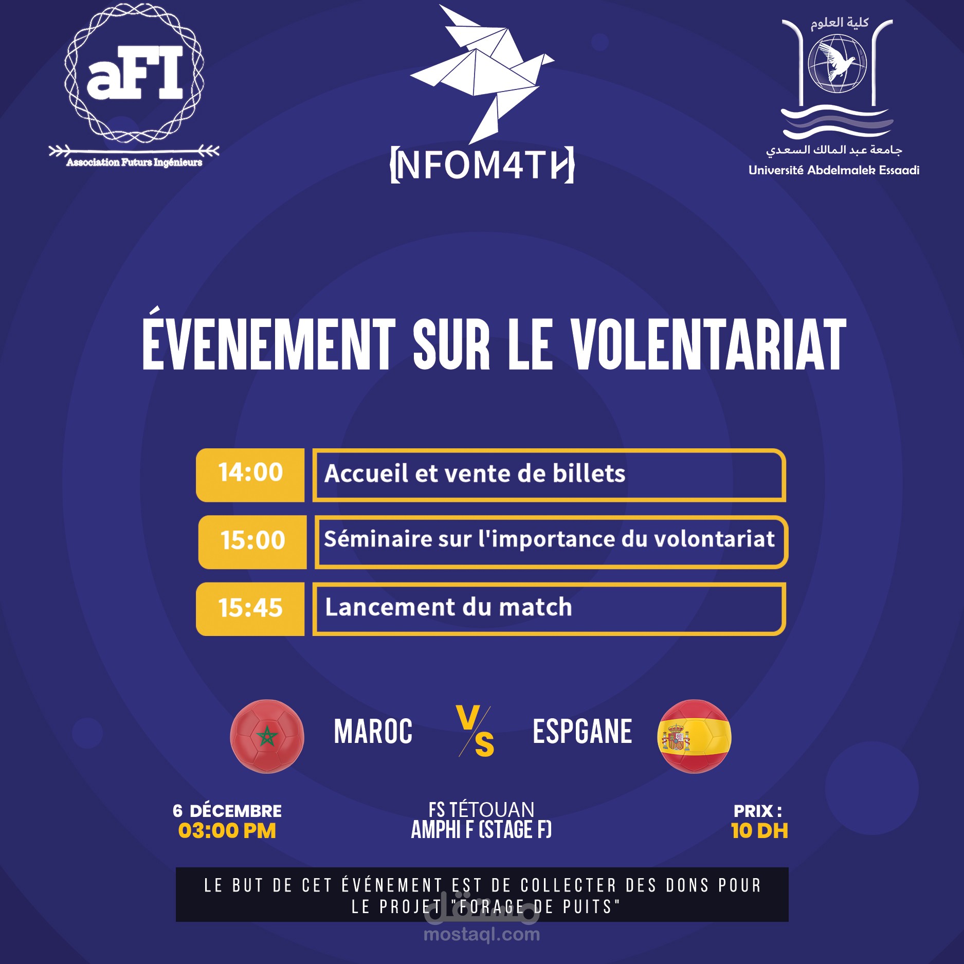 Welcome to our project of creating an exceptional poster dedicated to InfoM4th and its connection to the highly anticipated World Cup 2022. Our focus was to meticulously craft a design that encompasses every aspect of this grand event. We carefully considered elements such as contrasting colors, captivating text, and thoughtfully chosen fonts to ensure a visually engaging composition. The rhythm of the design harmonizes seamlessly with the excitement and magnitude of the World Cup, creating an immersive experience for the viewers. Additionally, we incorporated a touch of elegance and prestige through the use of gold, infusing the poster with a smooth and luxurious aura. Join us as we bring this extraordinary poster to life, embodying the essence of the World Cup 2022 in Qatar with meticulous planning and artistic finesse.