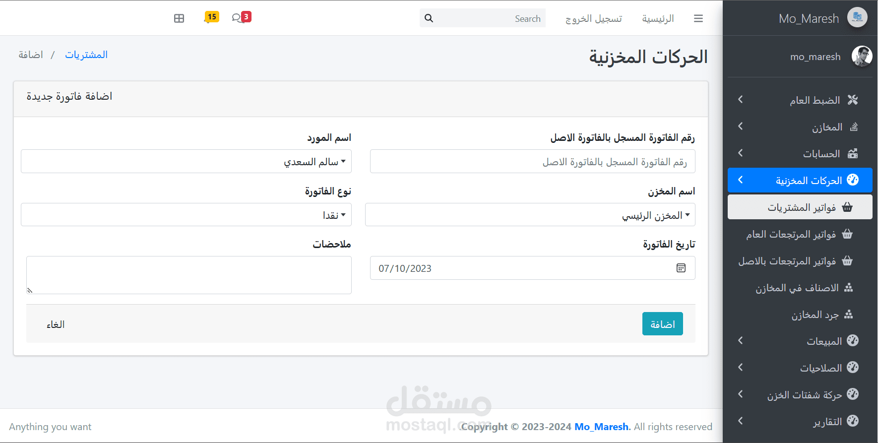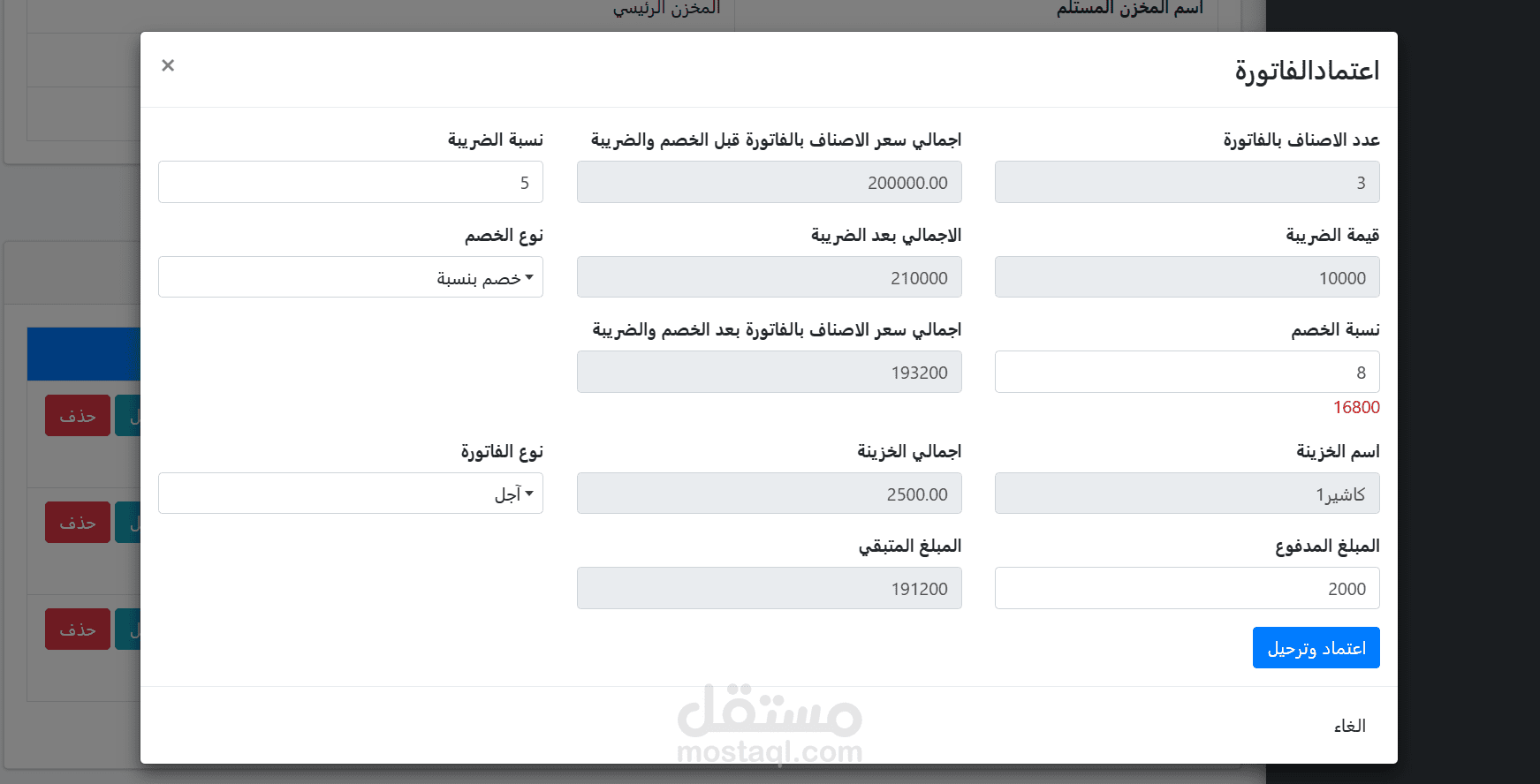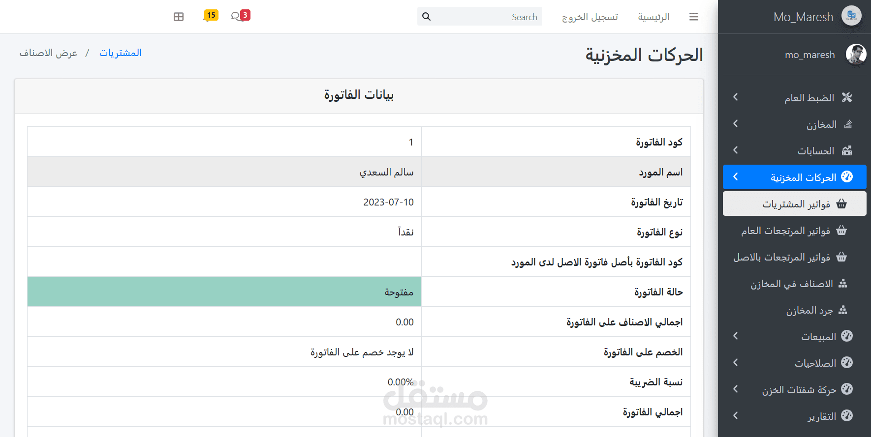- فواتير المبيعات ومرتجع المشتريات سوف يقومين بالتأثير في المخزن لحظيا عند طلب الأصناف.