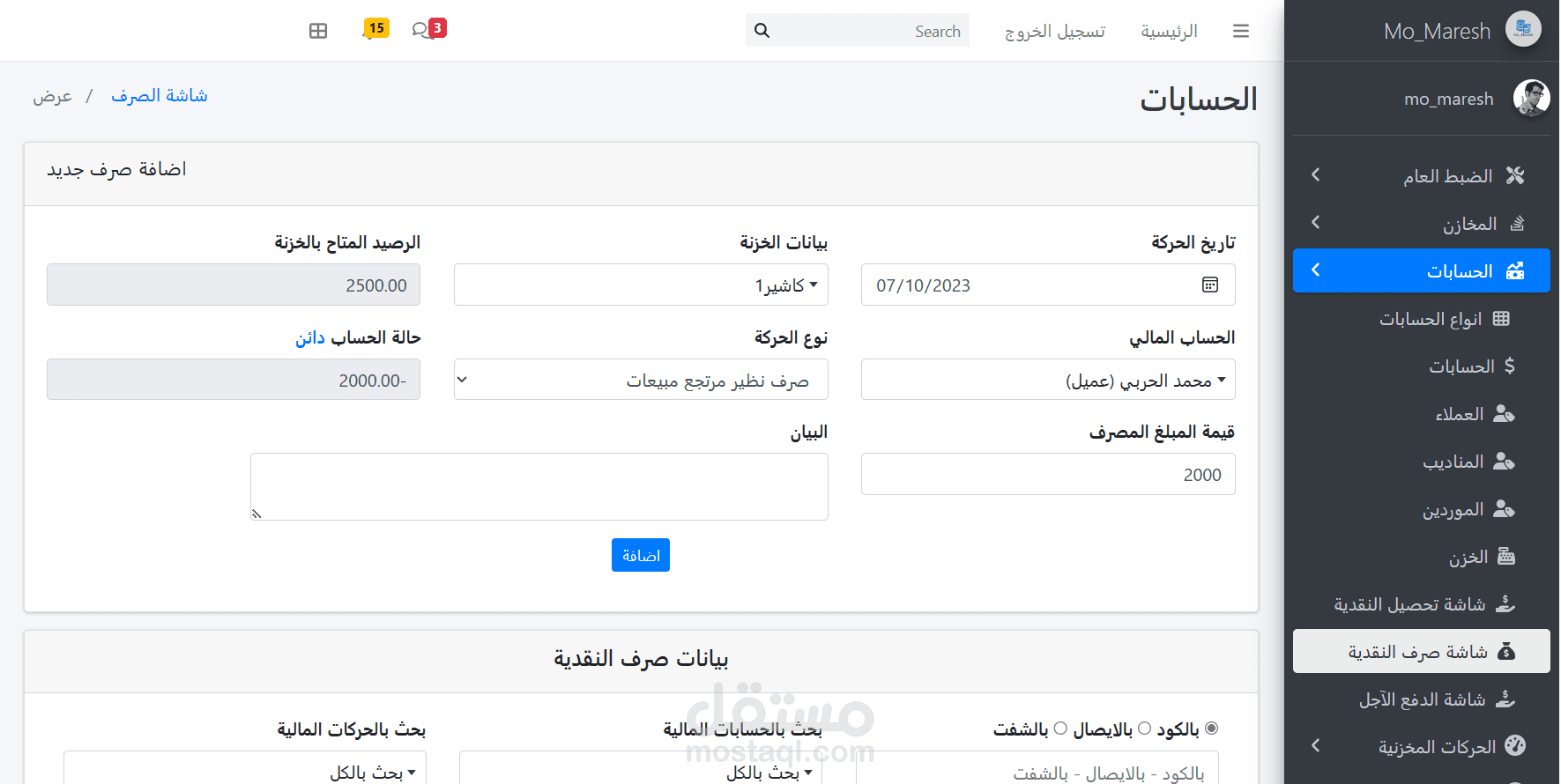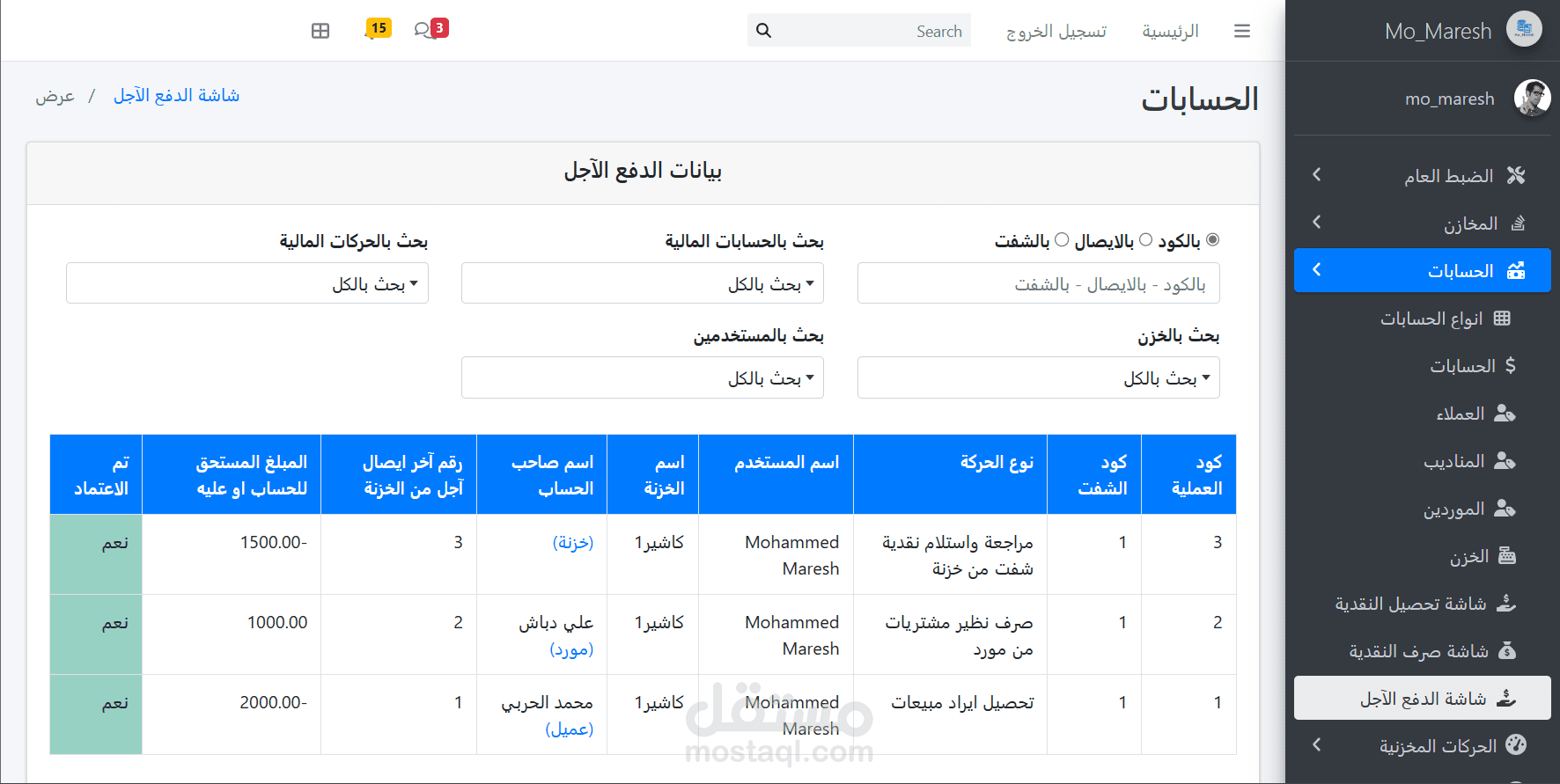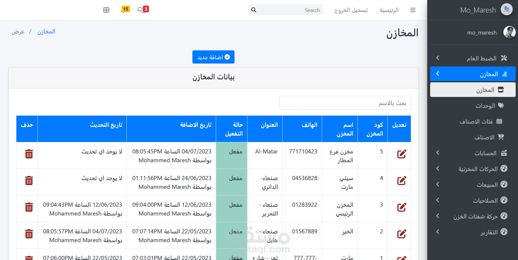 - فواتير المبيعات ومرتجع المشتريات سوف يقومين بالتأثير في المخزن لحظيا عند طلب الأصناف.
