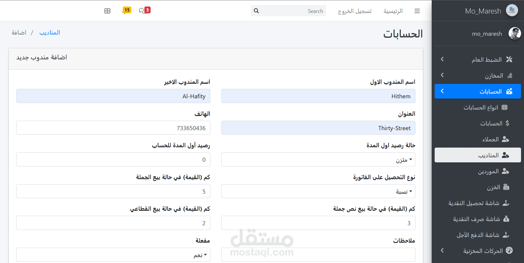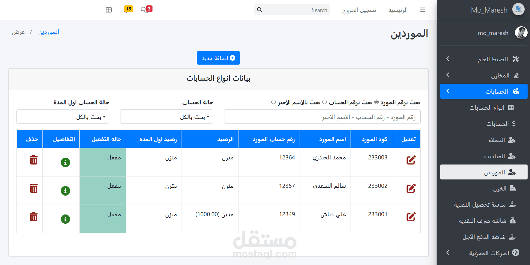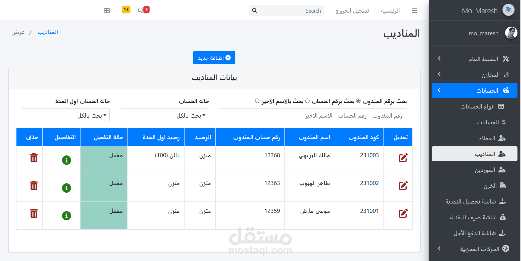 - كل عميل، مورد، موظف أو مندوب لديه حساب مالي في الشجرة المحاسبية.
