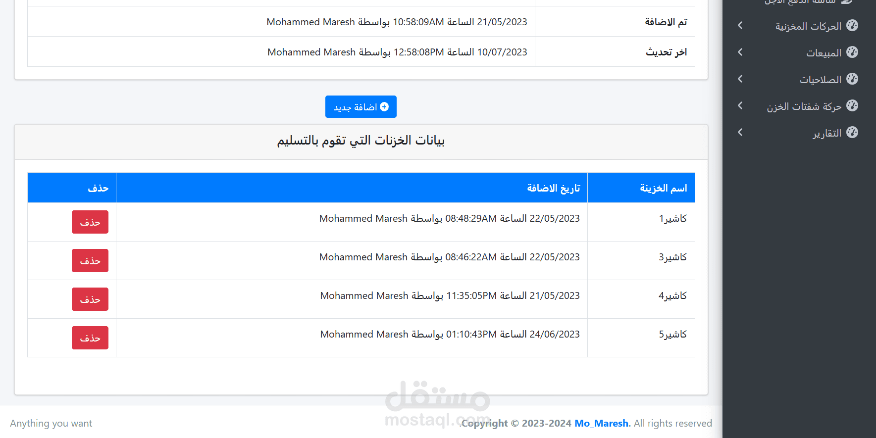 - عندما يقوم المستخدم بإنها عمله يقوم بإغلاق شفته ثم الشفت سيكون متاح للخزن الذين لهن الصلاحيات عليه لمراجعته واستلامه.
