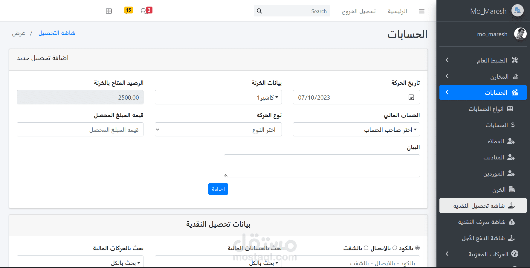 - أي عملية تحصيل أو صرف يتم تسجيلها في جدول الترانساكشن.