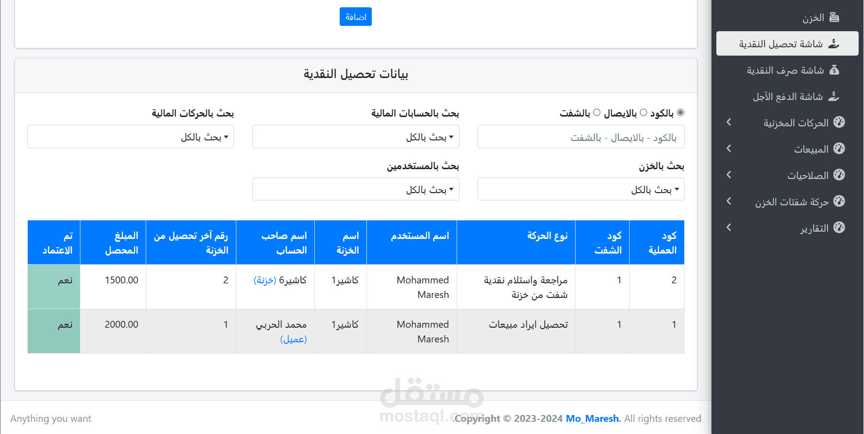 - أي مستخدم في النظام لا يمكنه القيام بأي عمل حتى يقوم بإستلام شفت من الخزن الذي يمتلك صلاحيات عليهن وأن لا يكون هناك مستخدم آخر مستلم شفت على هذه الخزنه، وأيضاً لا يكنه إلا استلام شفت واحد في الوقت.