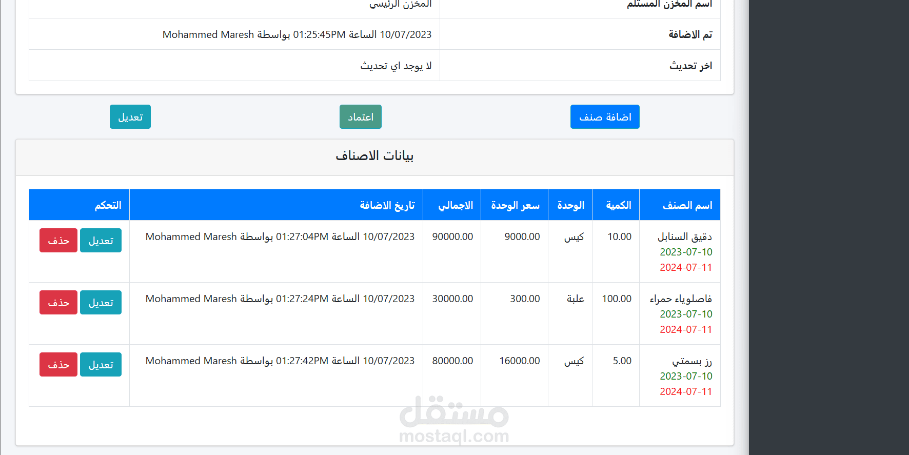 - يتم ادخال الأصناف في الباتش الذي يكون له نفس السعر، تاريخ الانتاج وتاريخ الانتهاء.