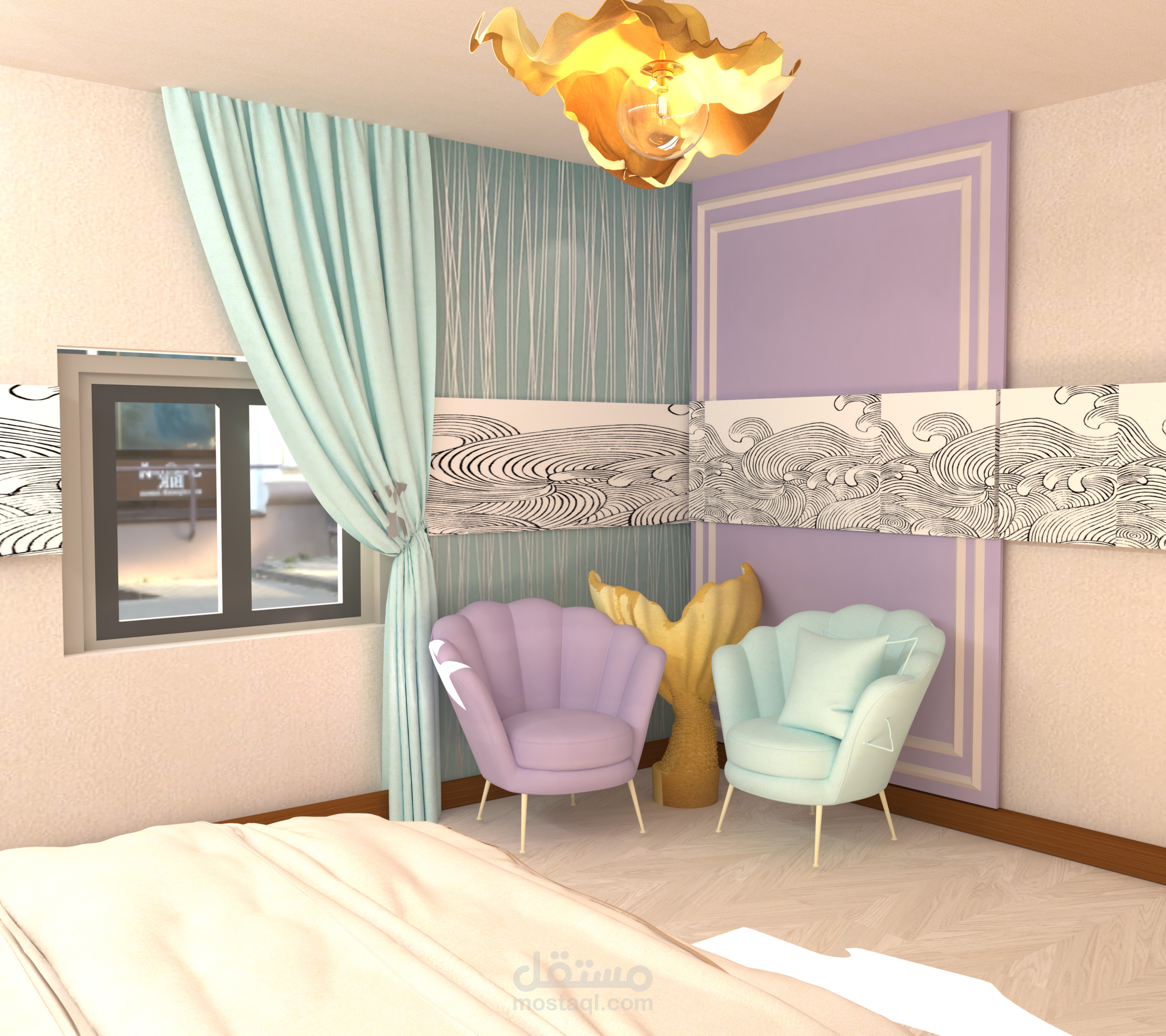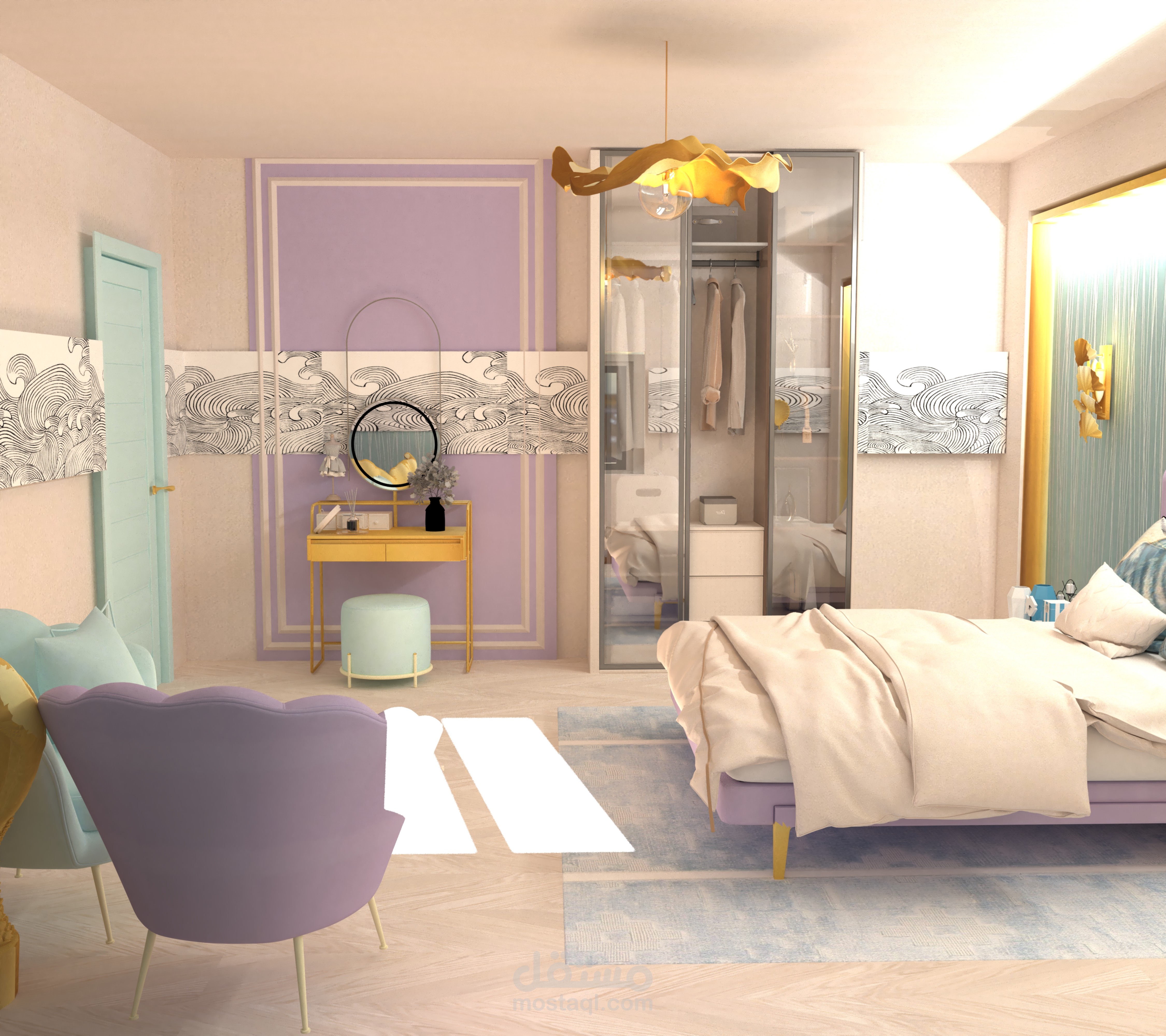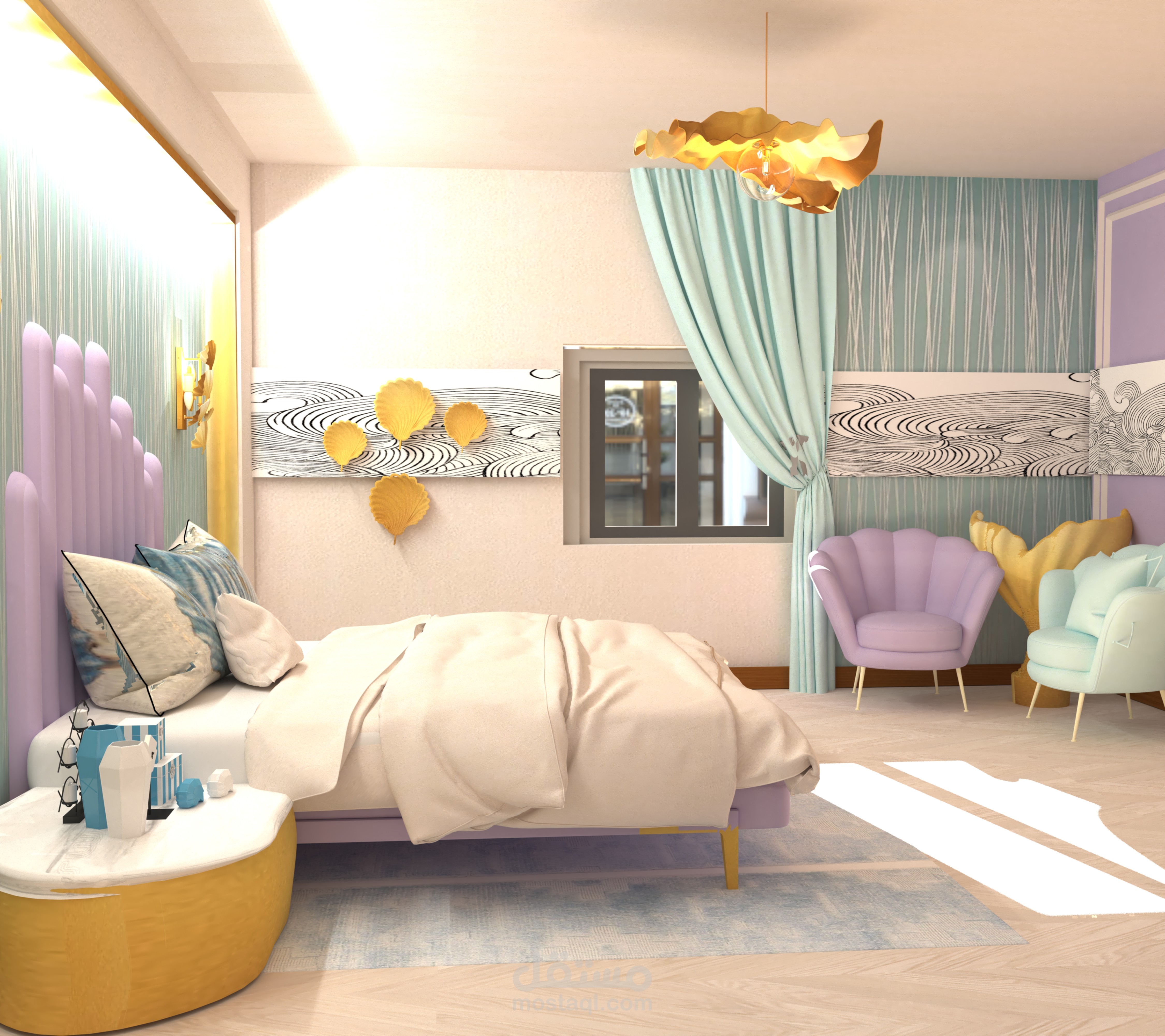 غرفة نوم بطابع والوان البحر