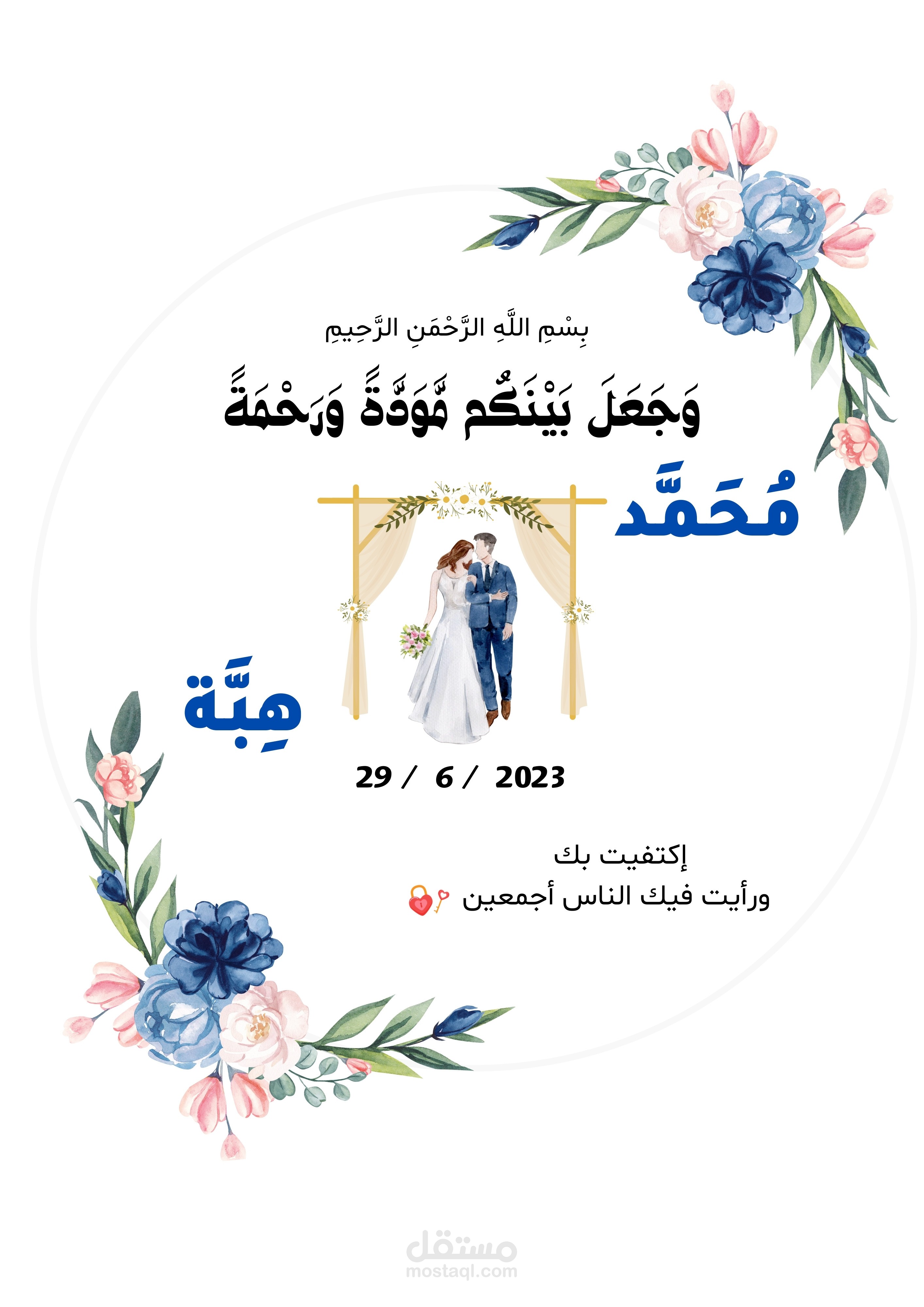 تم عمل تصميم دعوة كتب كتاب وعرضها ب mockup