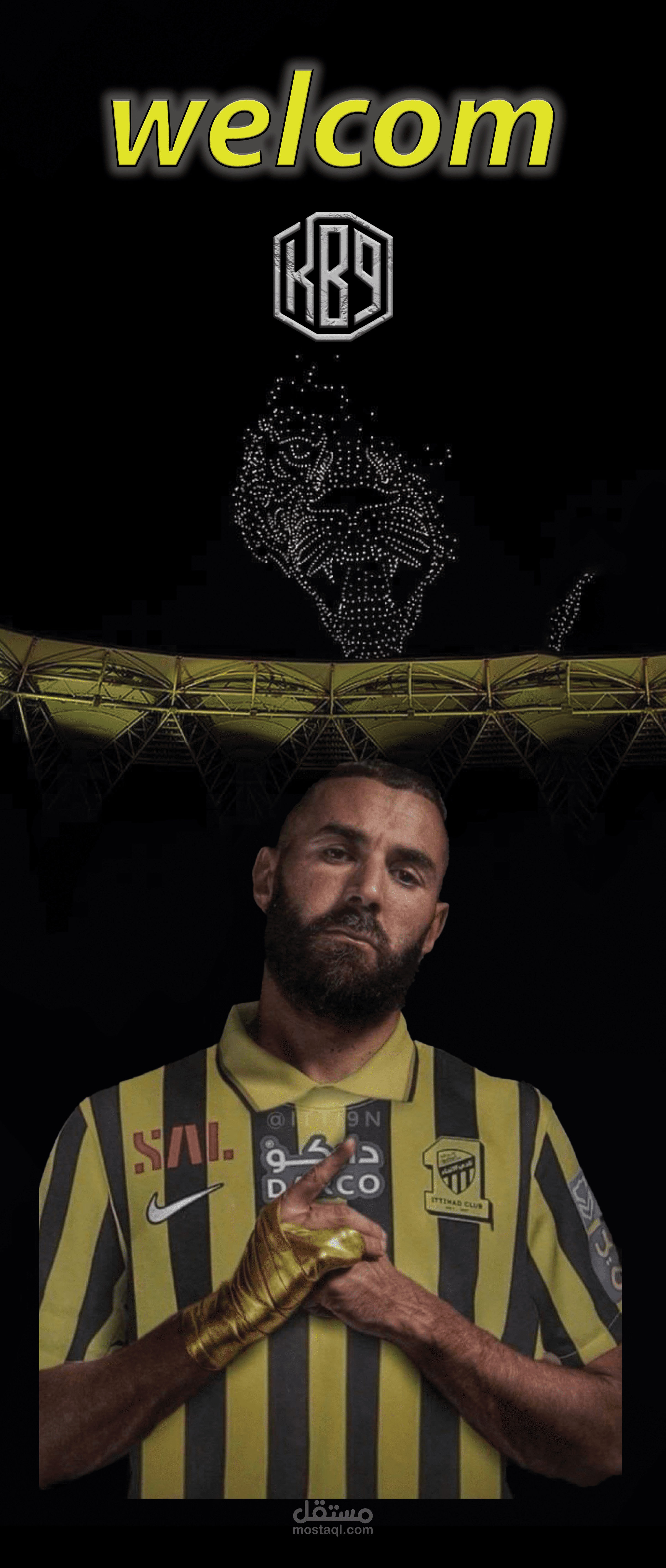 تصميم رول اب يعبر عن حفلة استقبال اللاعب كريم بنزيما والمنتقل حديثا الي نادي اتحاد جدة