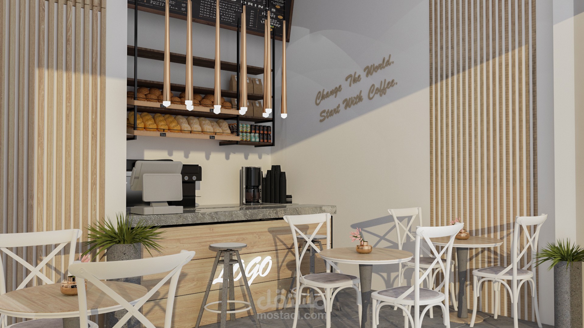 تصميم مودرن وبسيط لكافيه في الامارات