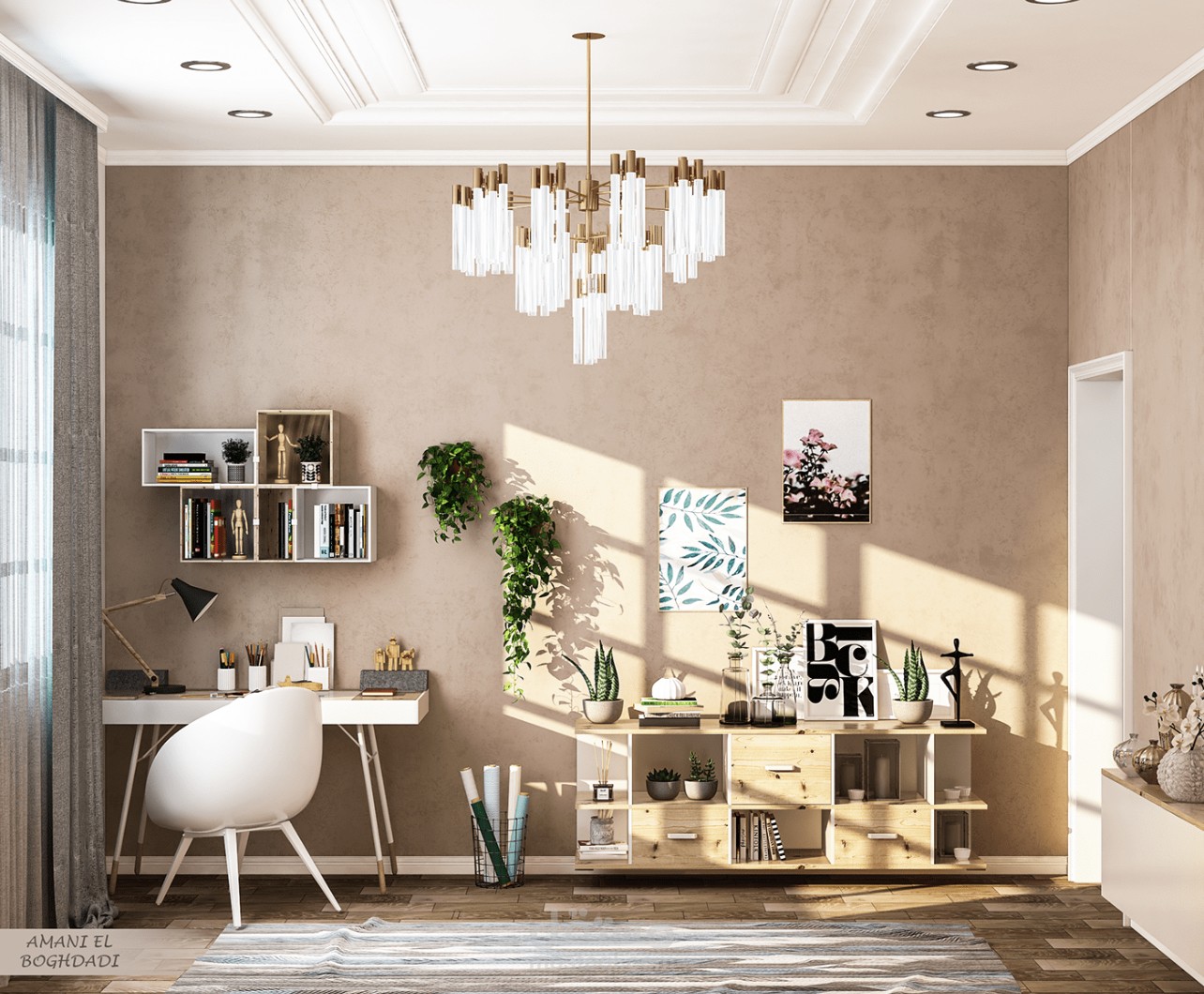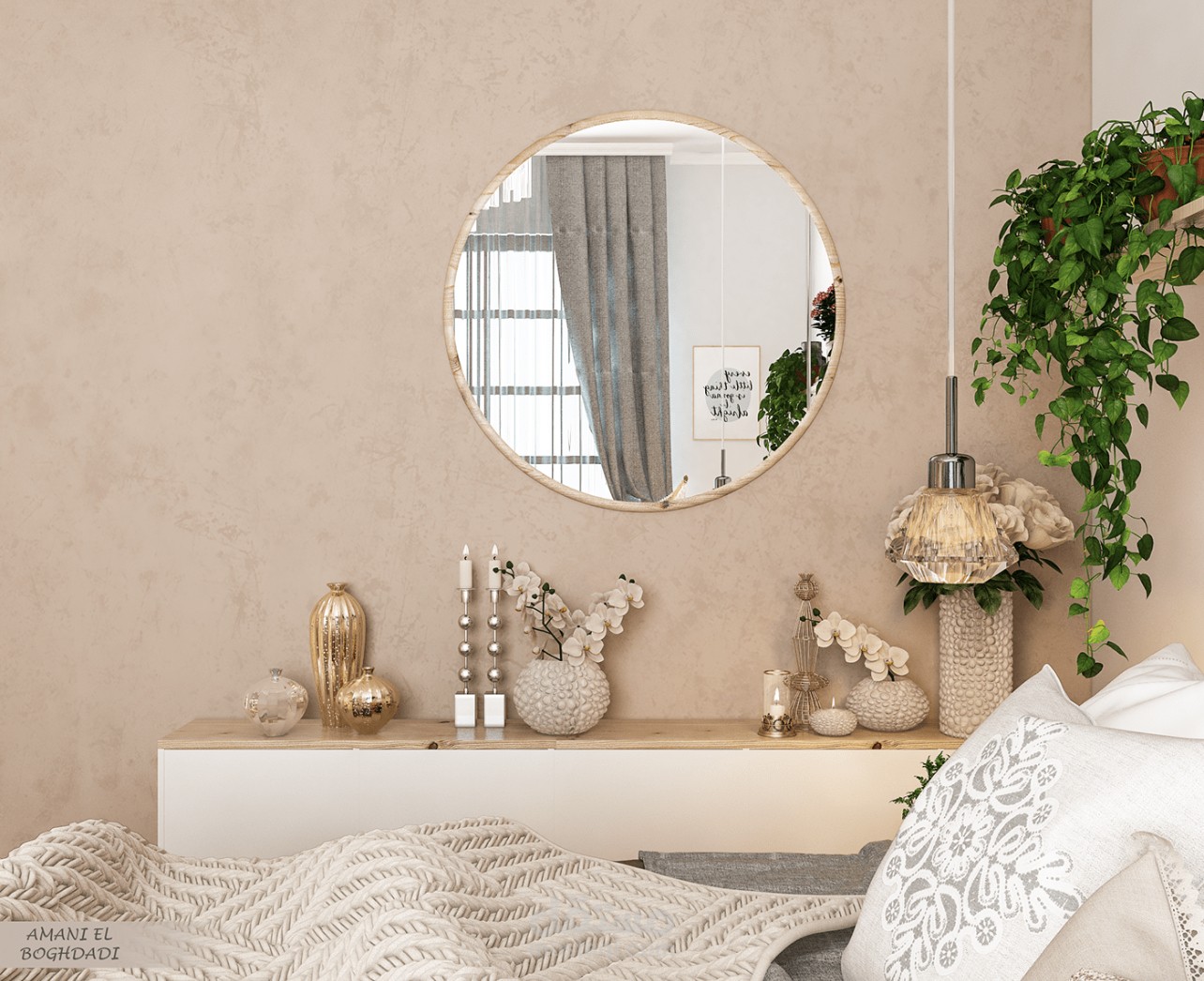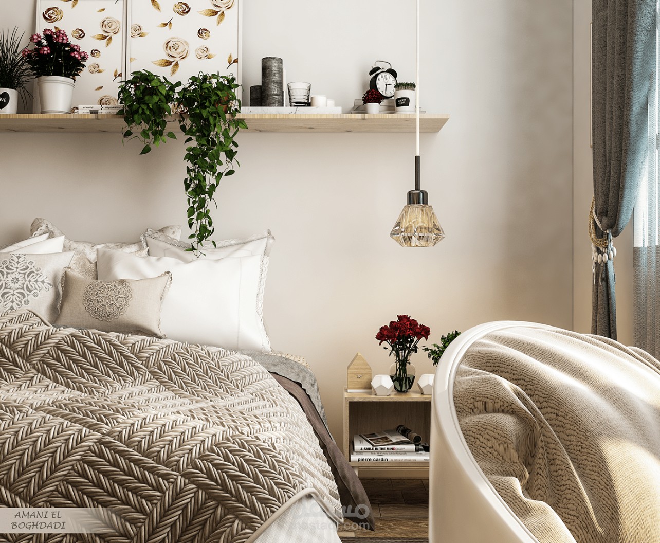 تصميم مودرن هادئ وناعم لغرفة نوم بناتيه.