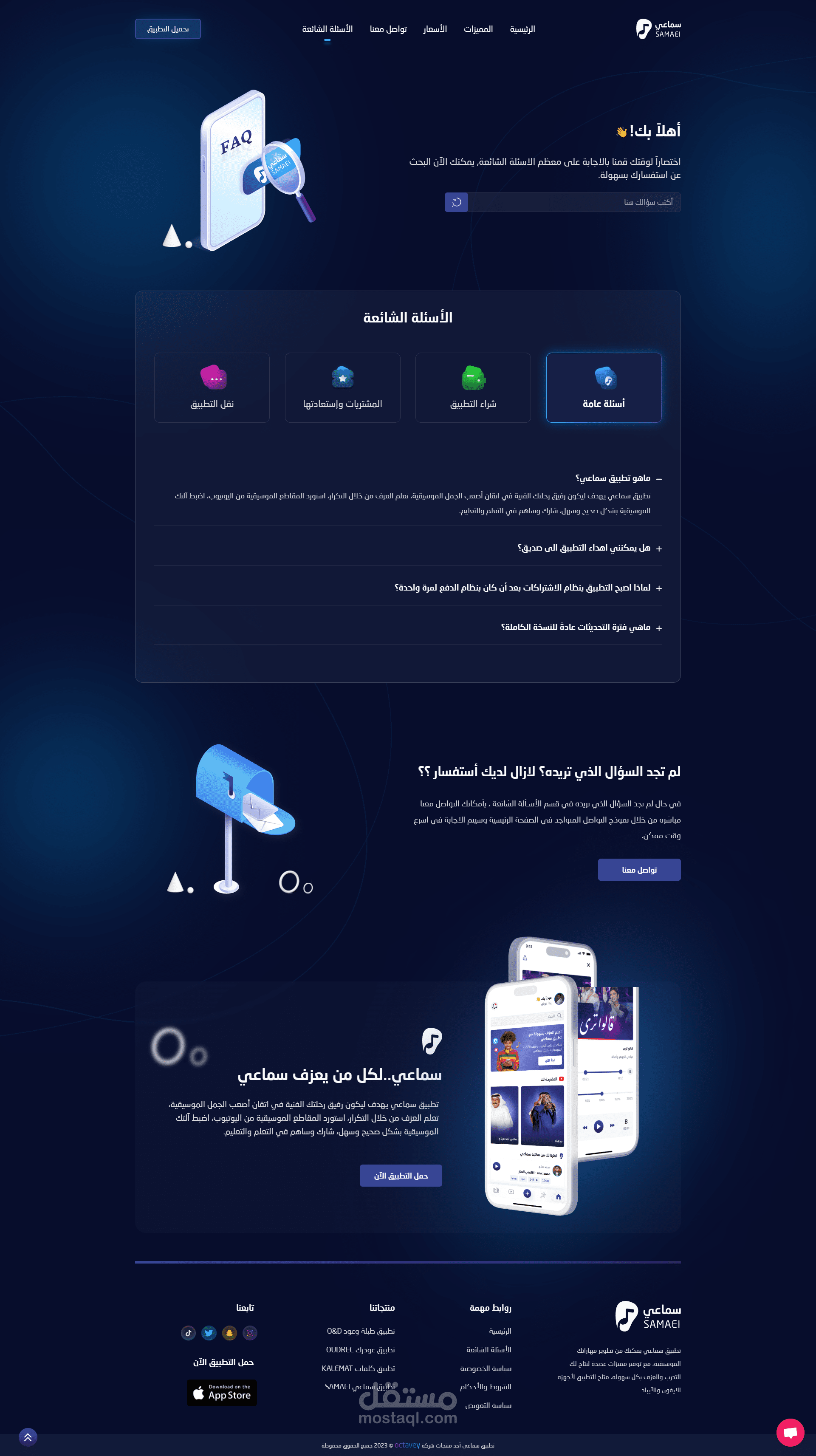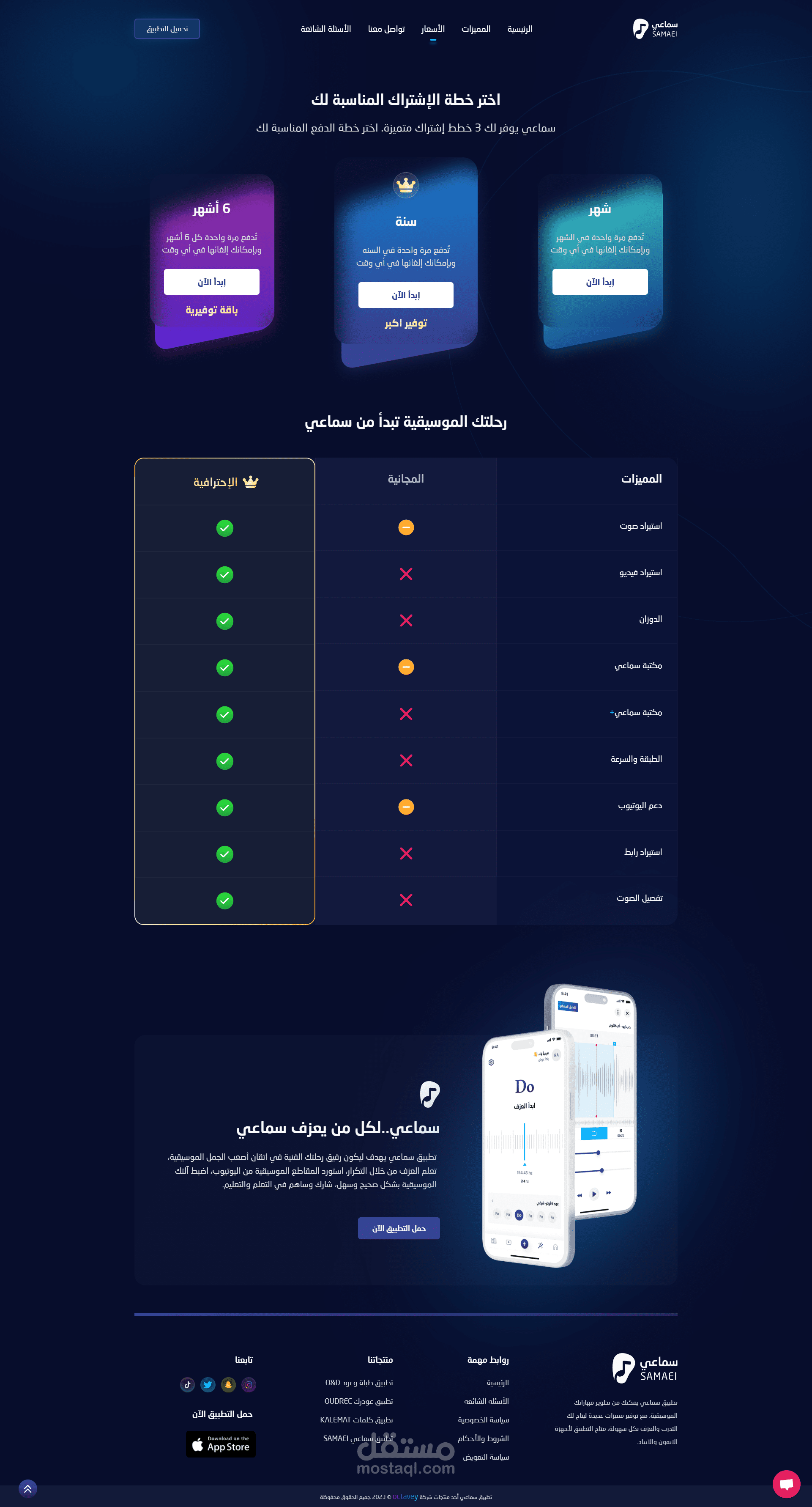 موقع خاص لتطبيق رائد في مجال تعلم الموسيقى (Samaei) لشركة أوكتافي.