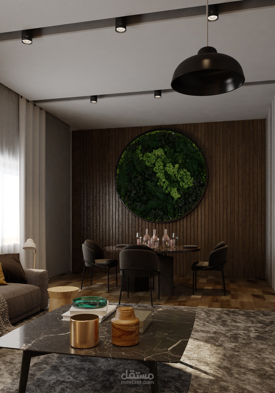 تصميم لغرفة جلوس مع ركن للطعام في السعودية .