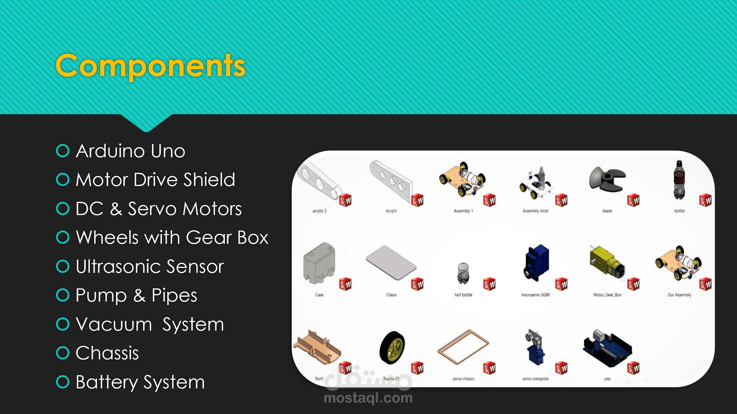 في هذا العرض التقديمي كان الموضوع هو مشروع لي مع زملائي في مادة التصميم في الكلية و المشروع عبارة عن نموذج لروبوت تنظيف ذكي