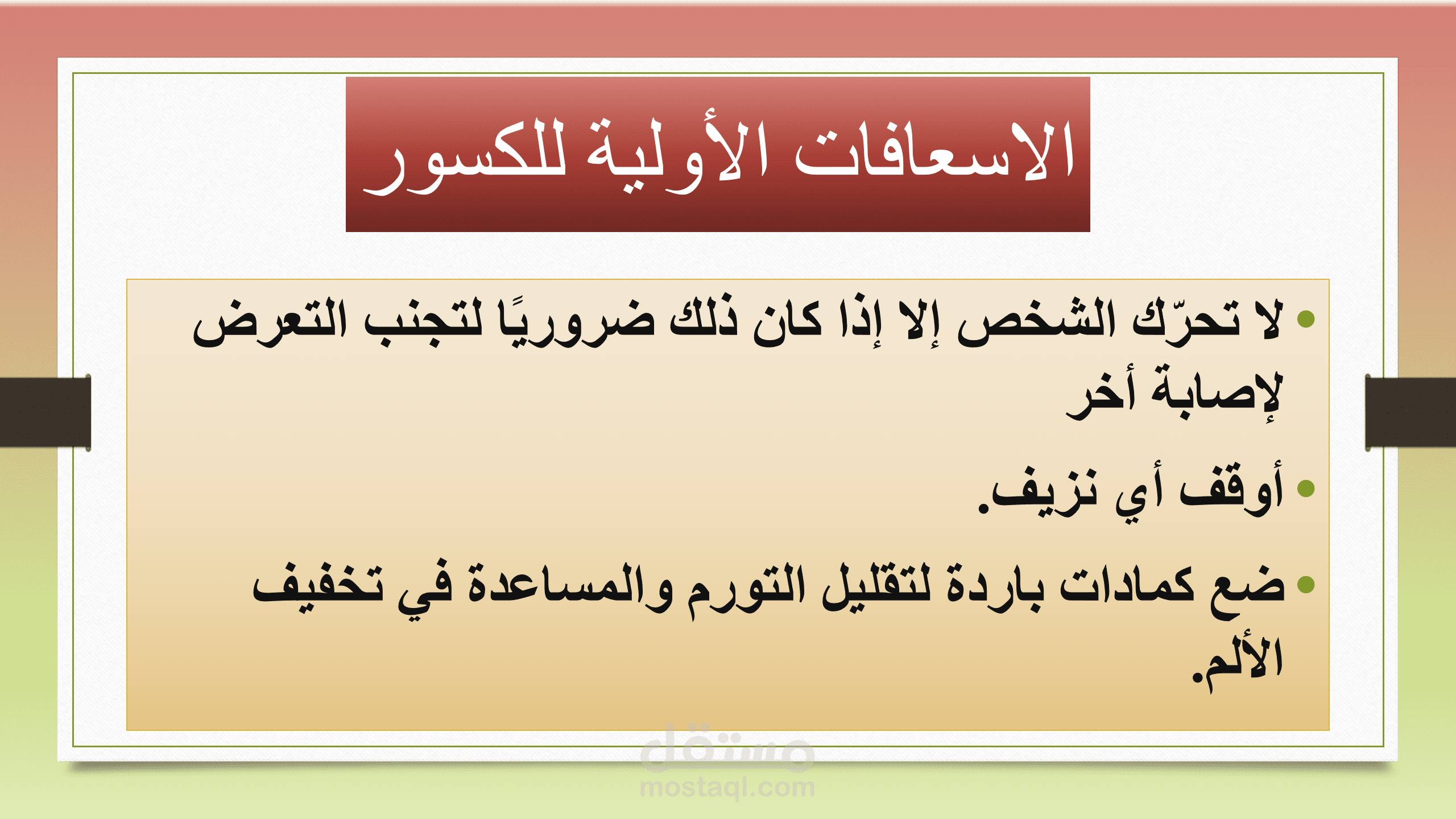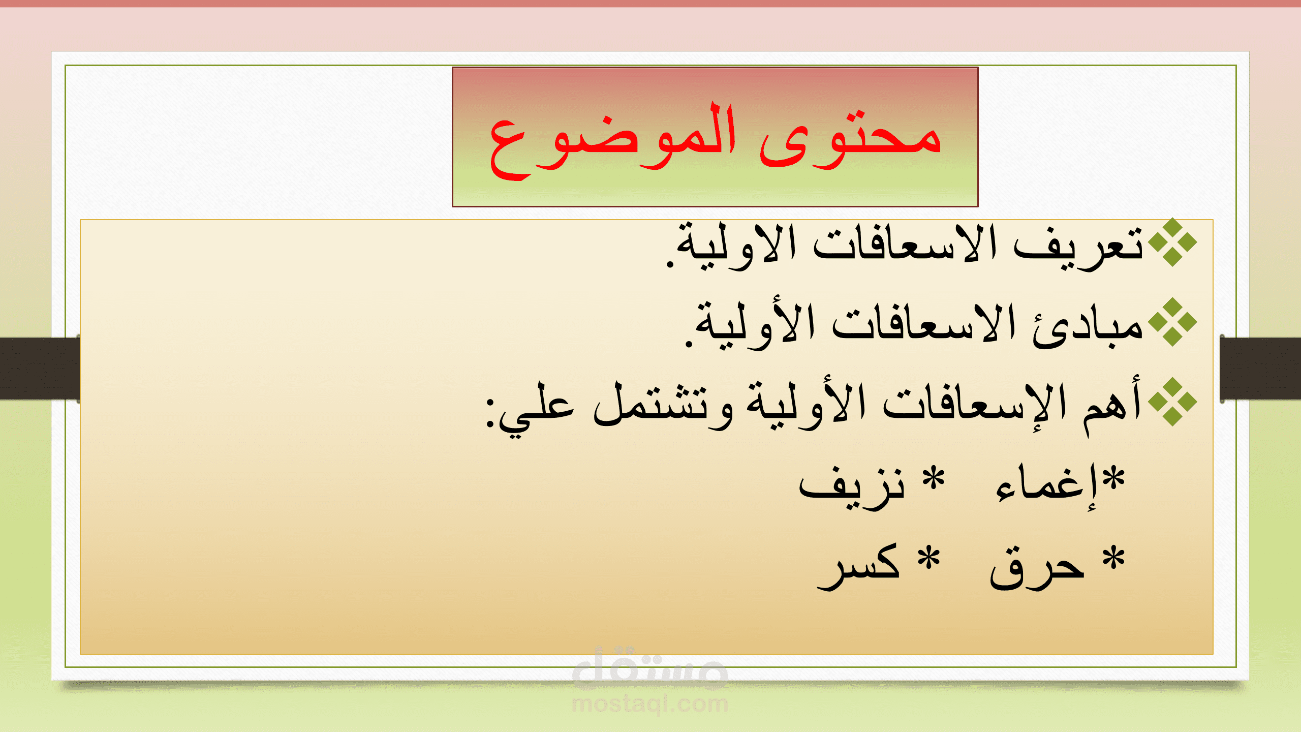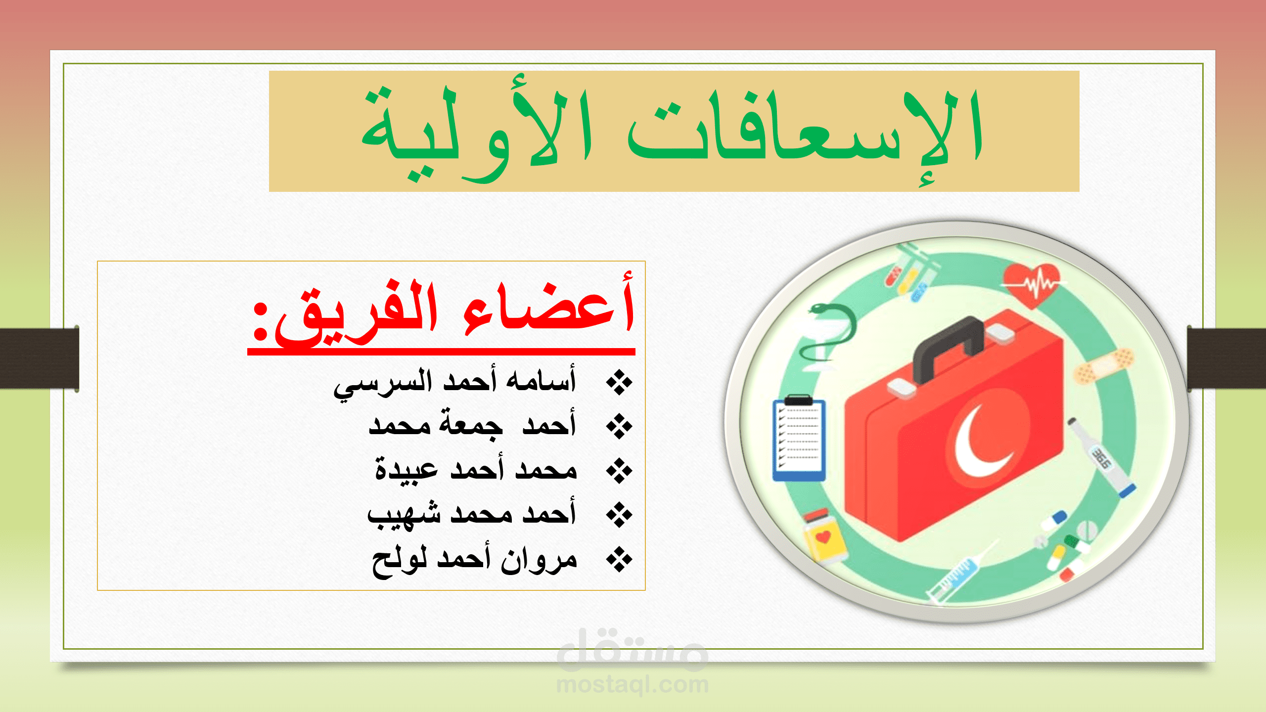 في هذا العرض كان مطلوبا مني أنا و زملائي إعداد عرض عن الإسعافات الأولية