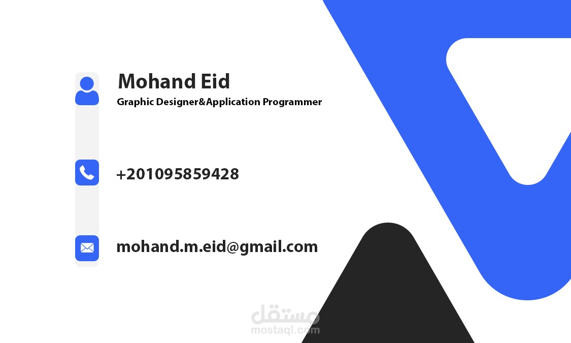 هذا كارت شخصى يحتوى على الاسم والرقم و الايميل و نوع العمل