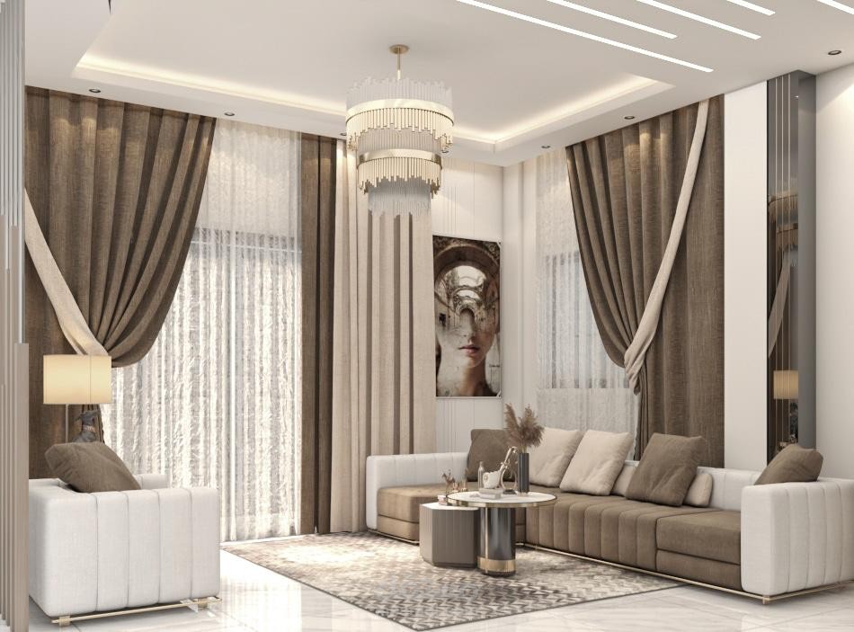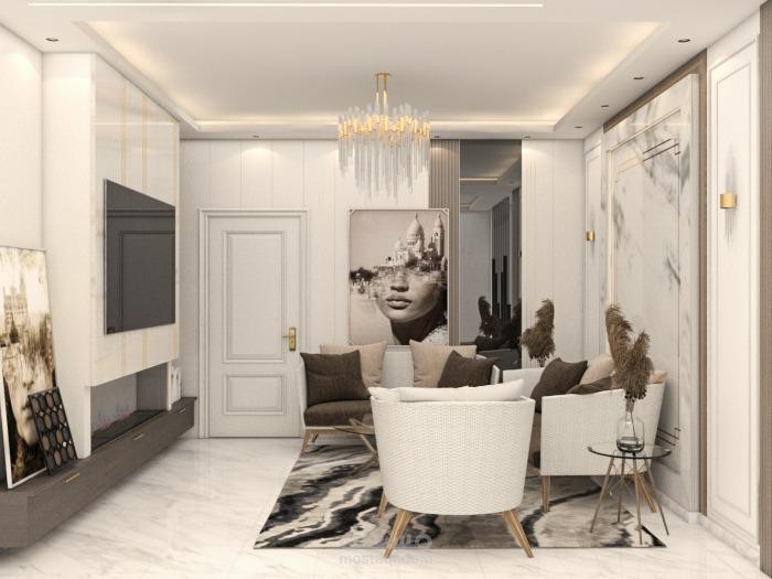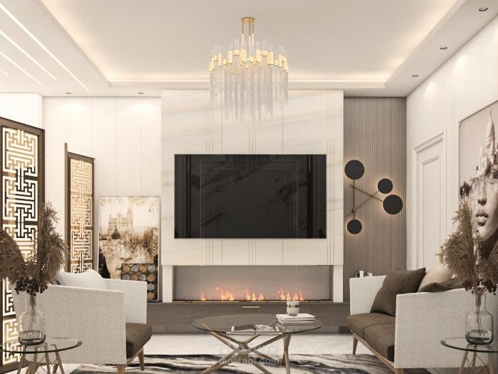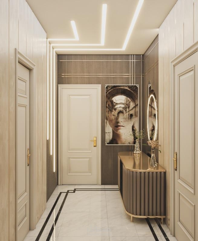 تصميم modern لمدخل و غرفة جلوس في سوريا.