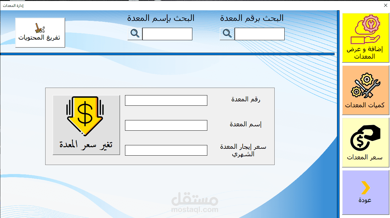 3-1 شاشة لتغير سعر المعدات وذلك بالبحث عنها برقم المعدة أو إسمها