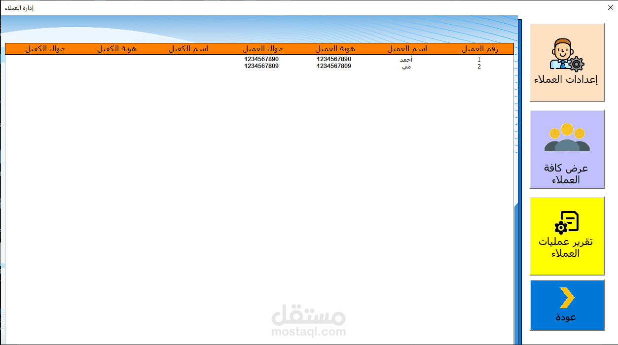 2-2 شاشة لعرض كافة العملاء الموجودين وعرض بيناتهم