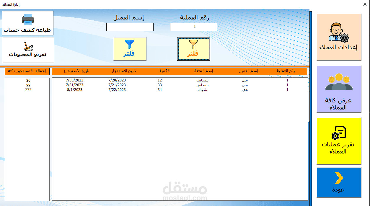 أقدم لك برنامج إدارة عمليات الايجار والذي يتضمن الاتي:-