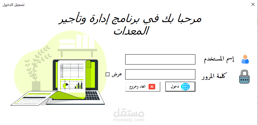 - واجهة تسجيل الدخول بإسم وكلمة المرور المستخدم