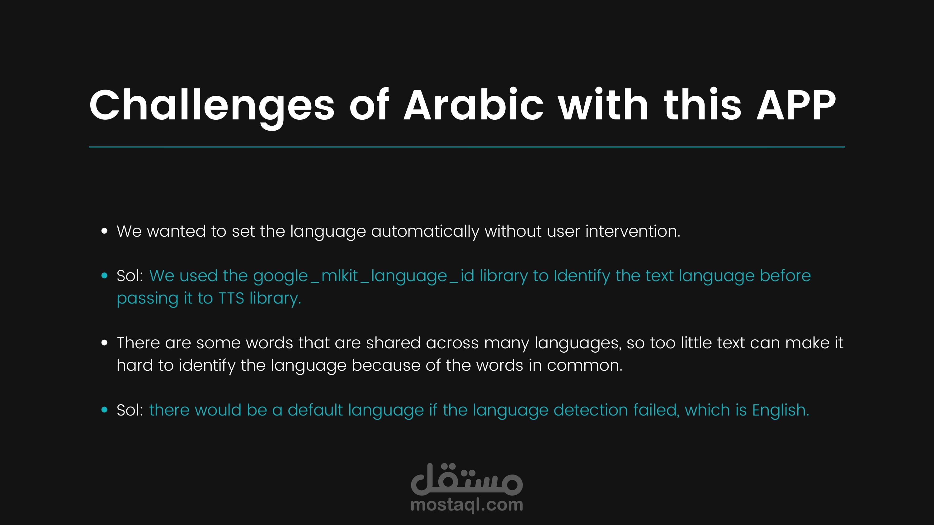 1- Text to Speech with auto detection, detect the language with google ml kit language det then it pass language and the text to flutter TTS to say the text