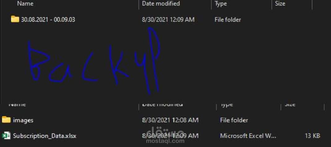 8- زرار النسخ الاحتياطي بياخد ملف ال excel احتياطي وملف الصور بتاعت العملاء عشان لو اتمسحو لاي سبب من الاسباب