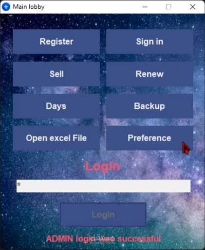 10- preference button, it changes subscribtion prices (1 month, 3 months, 6 months, a year), and it changes admin login password(and excel sheet) and worker login password.