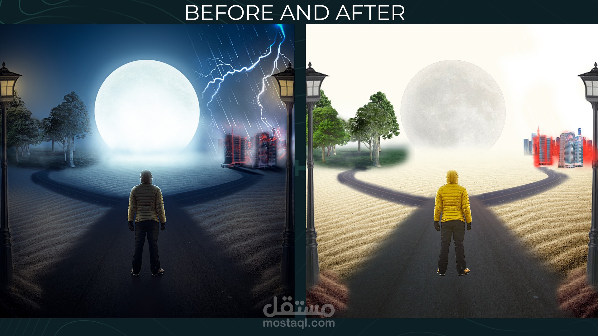 This is a personal artwork that expresses the choice between two paths: pain and doubt in survival. Think before you choose your destiny.