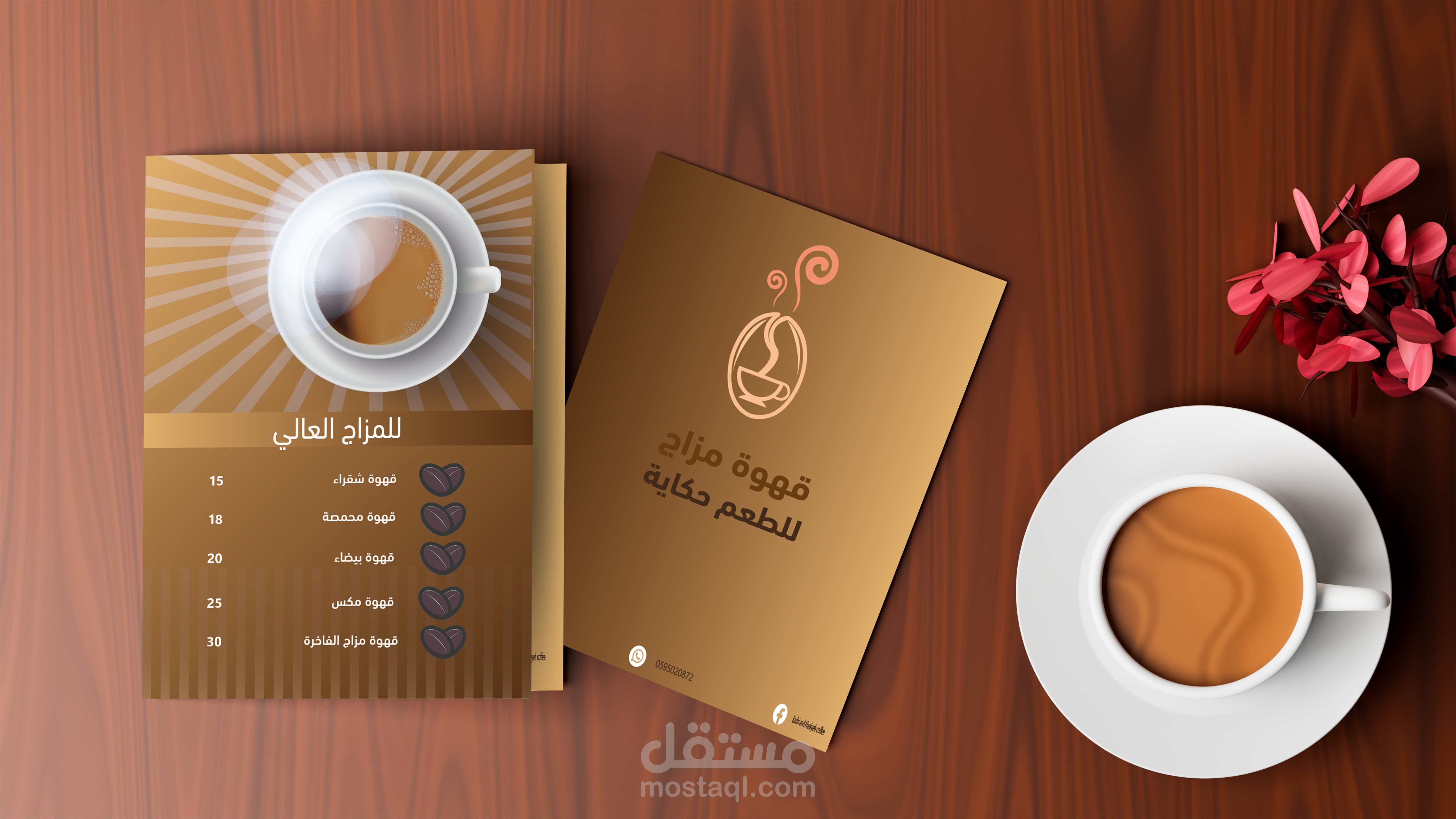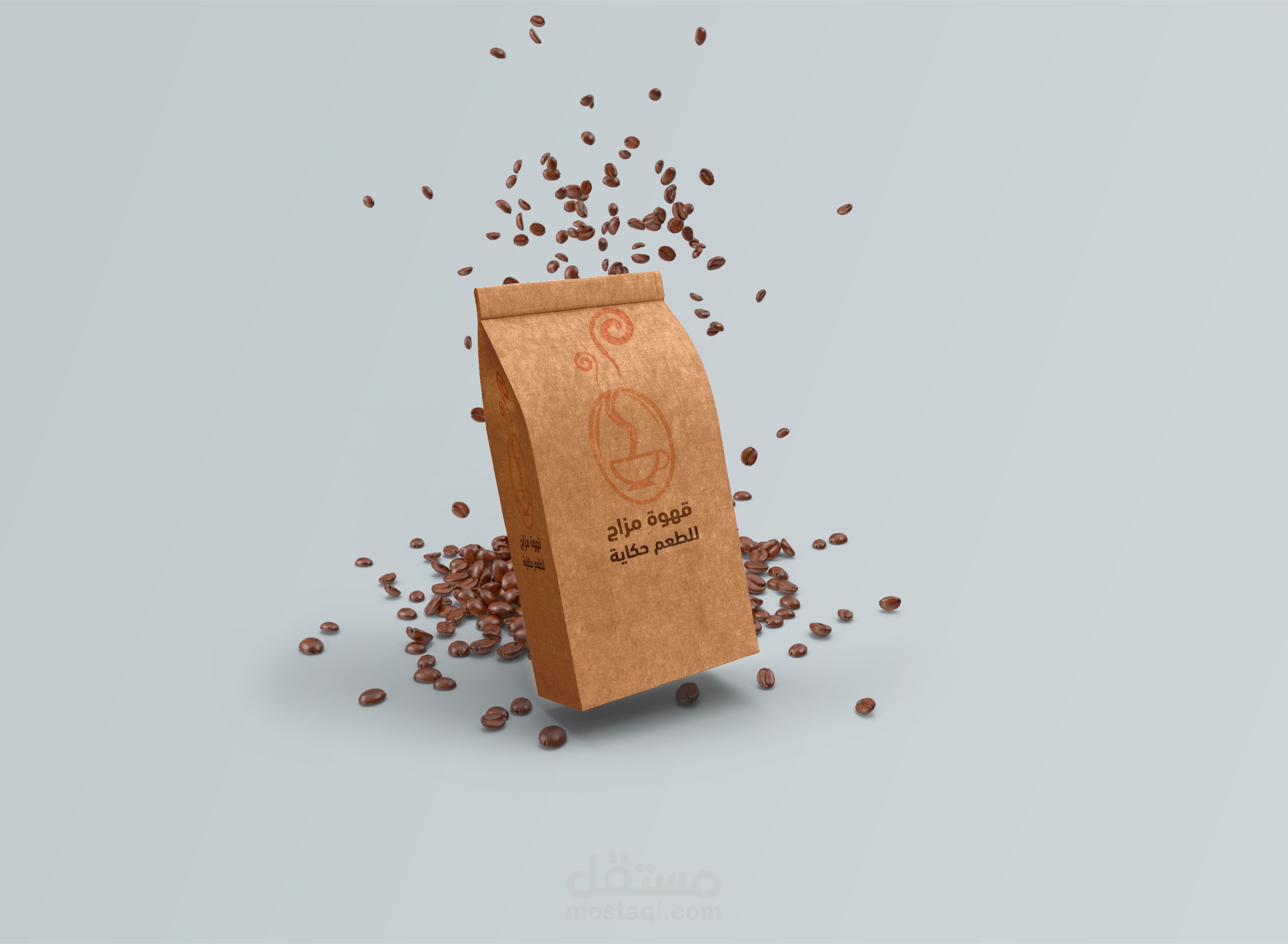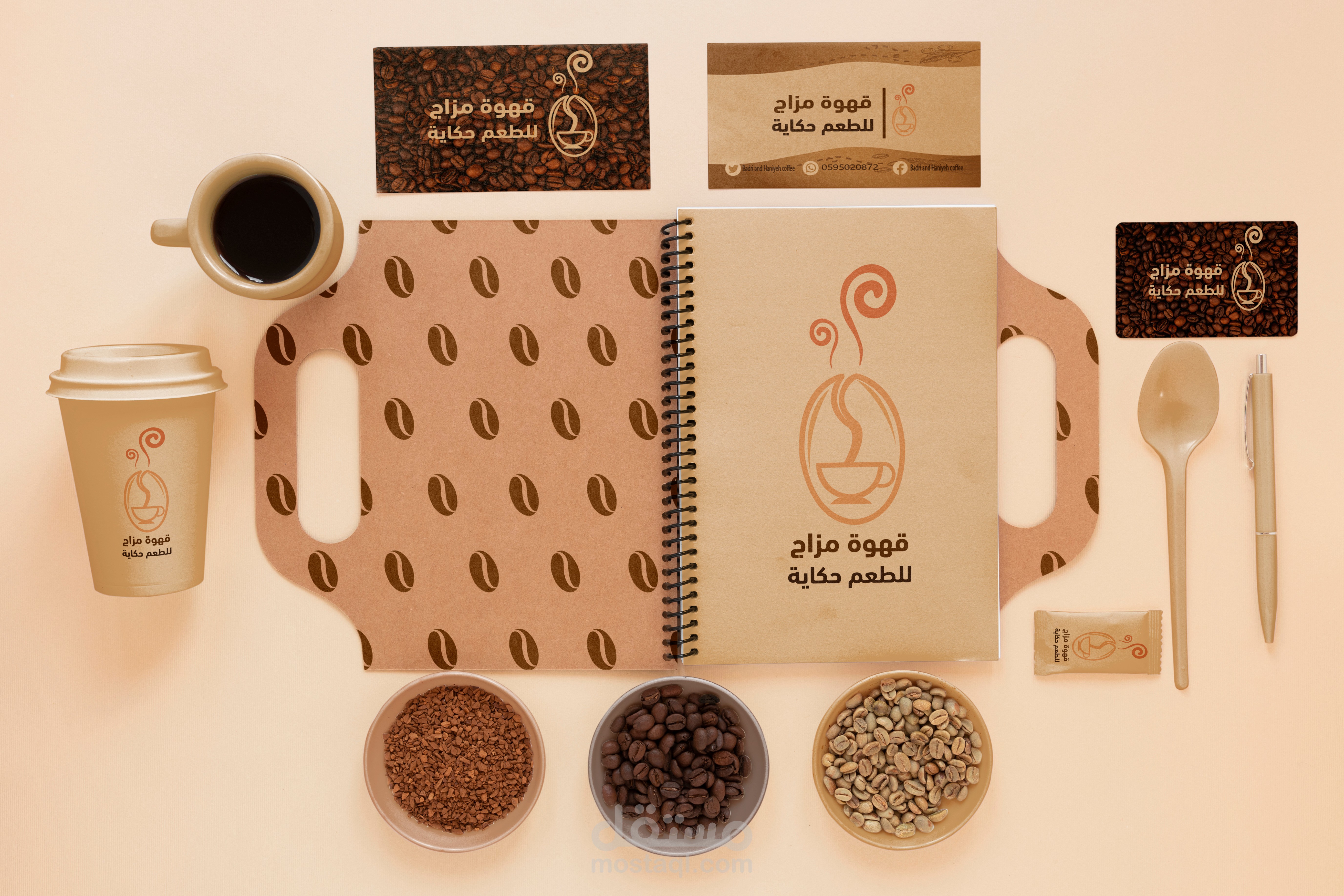 تصميم هوية بصرية لتعريف عن الشركة باستخدام الفوتوشوب الاليستريتور لصالح شركة مزاج للقهوة .