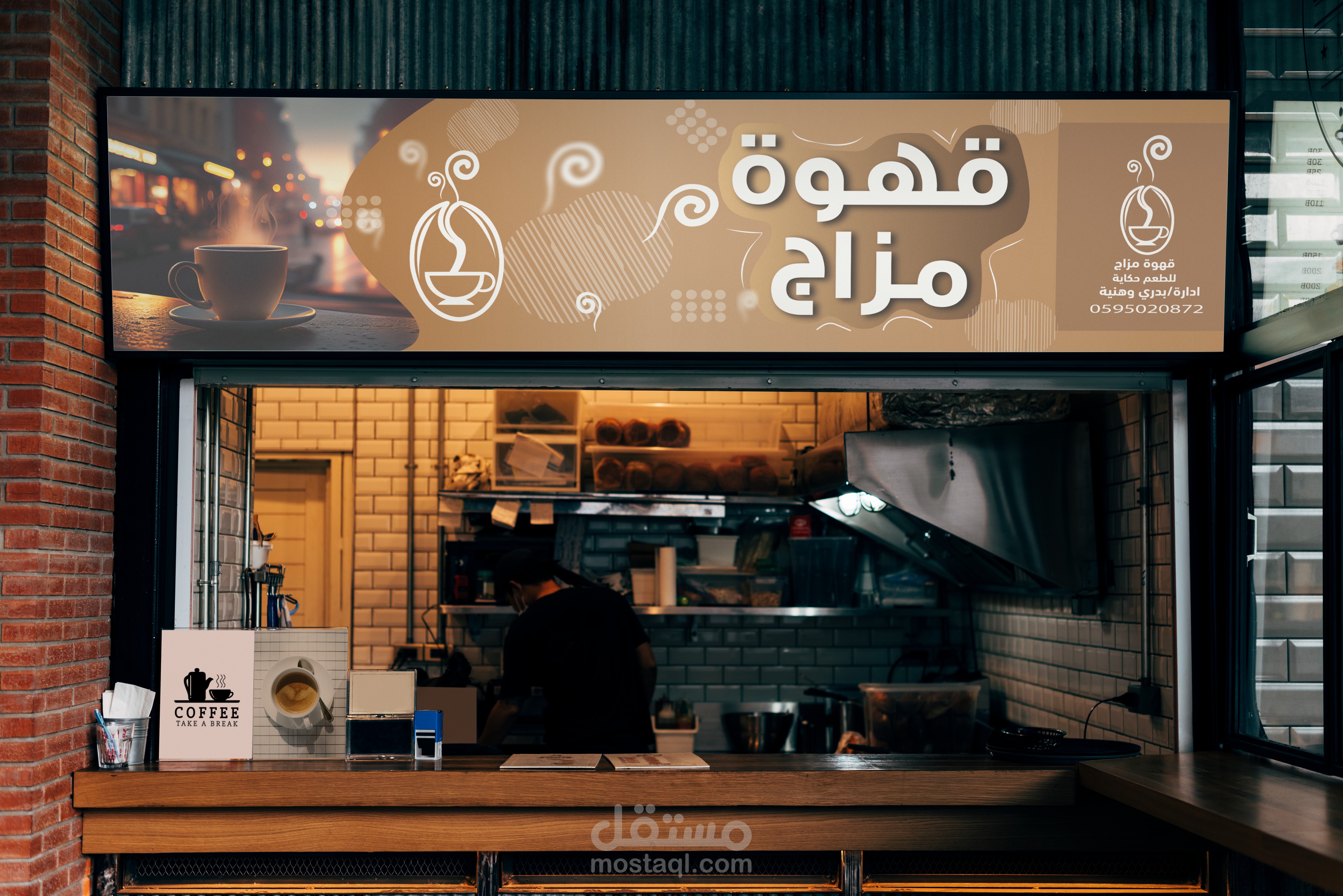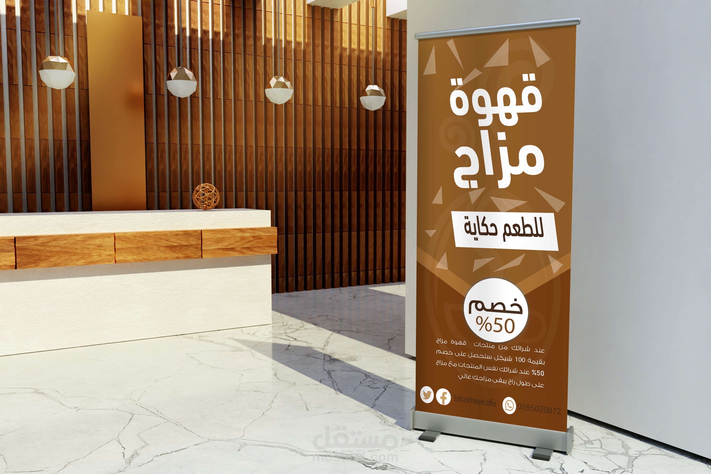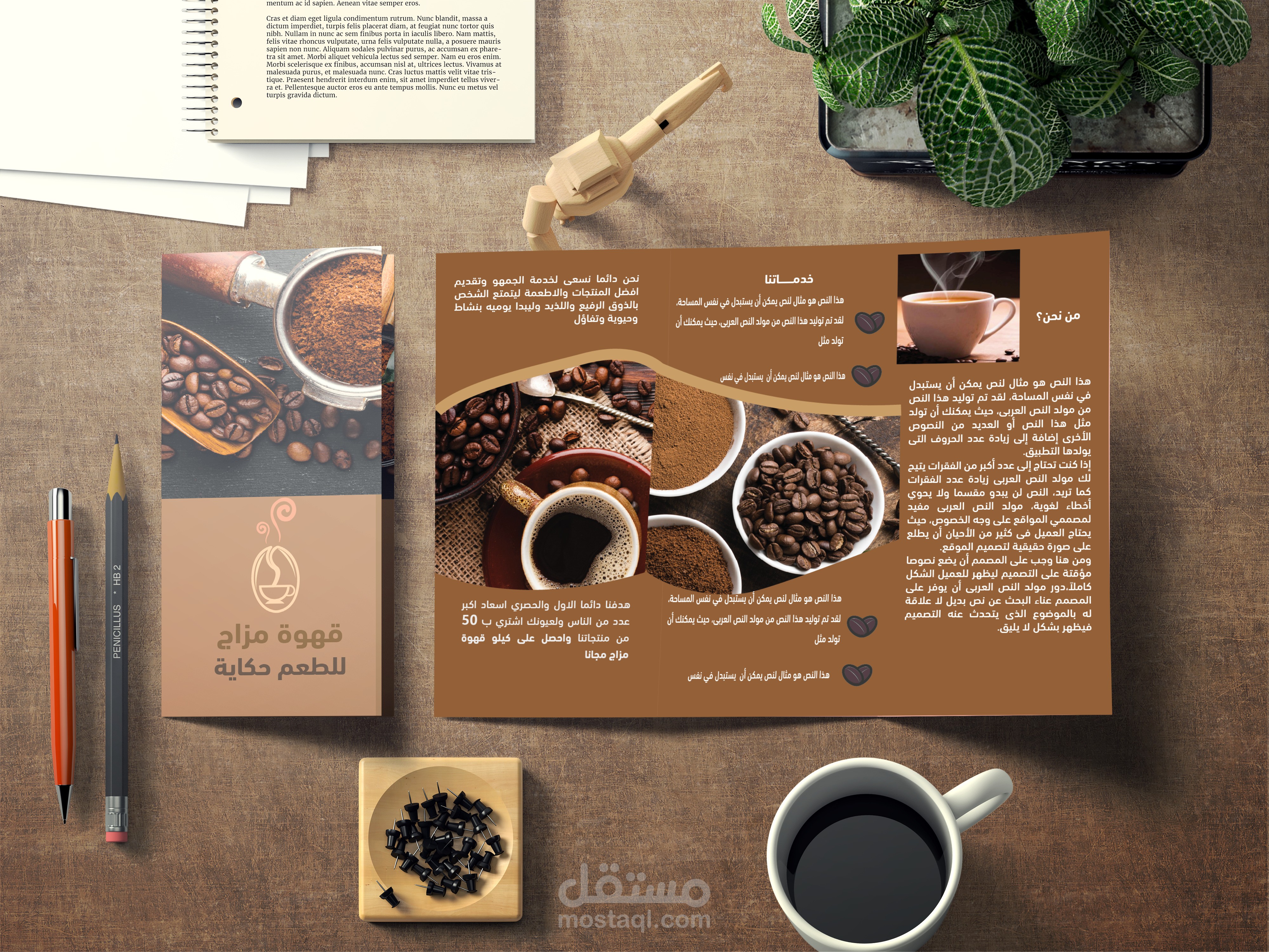 تصميم هوية بصرية لتعريف عن الشركة باستخدام الفوتوشوب الاليستريتور لصالح شركة مزاج للقهوة .