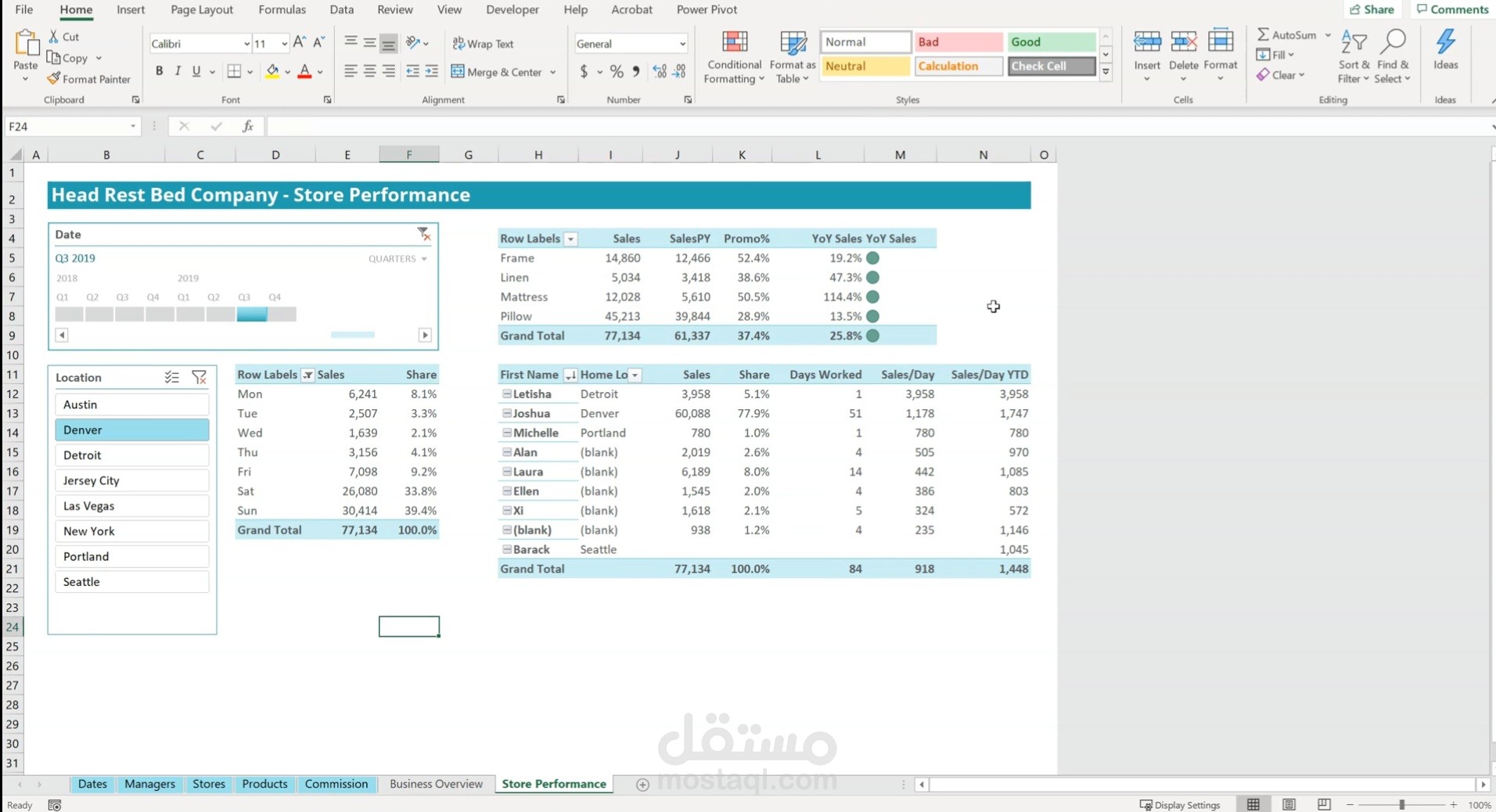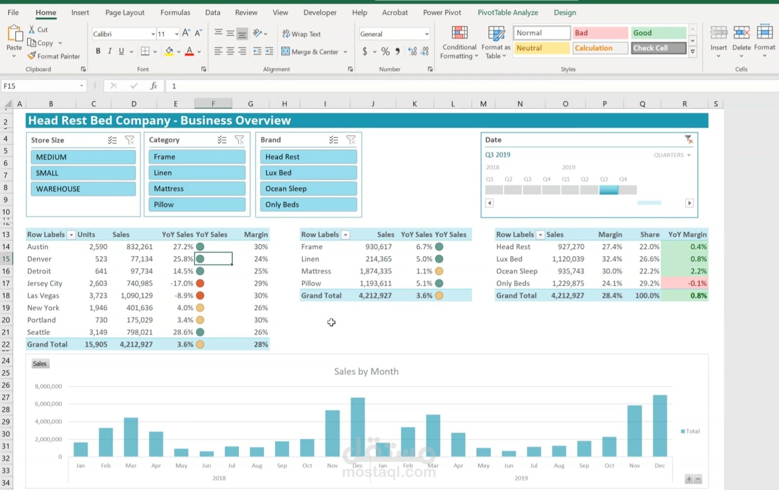 بالاضافة الي عرض ملخص نتائجها في شكل pivot chart .