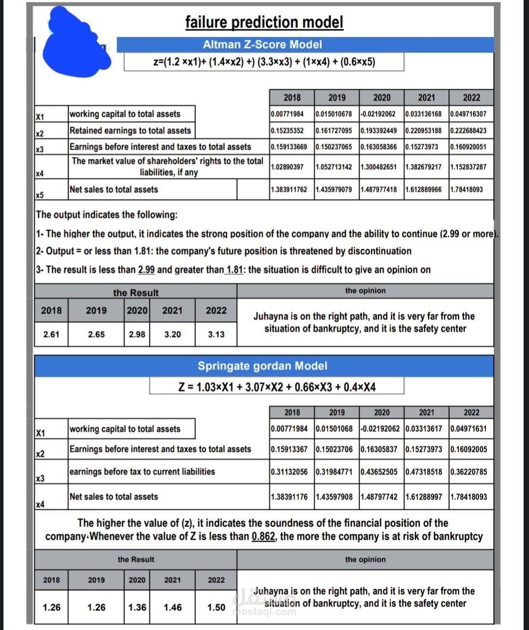 وليس مجرد اظهار النتائج بالارقام فقط ولكن مع شرح وتوضيح معني كل نسبة بالنسبة لوضع شركتك .