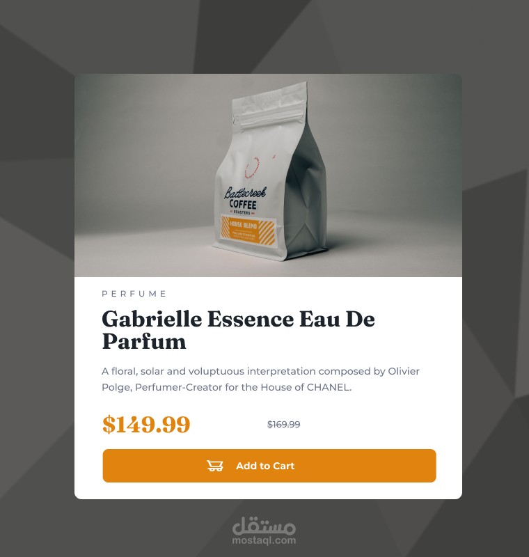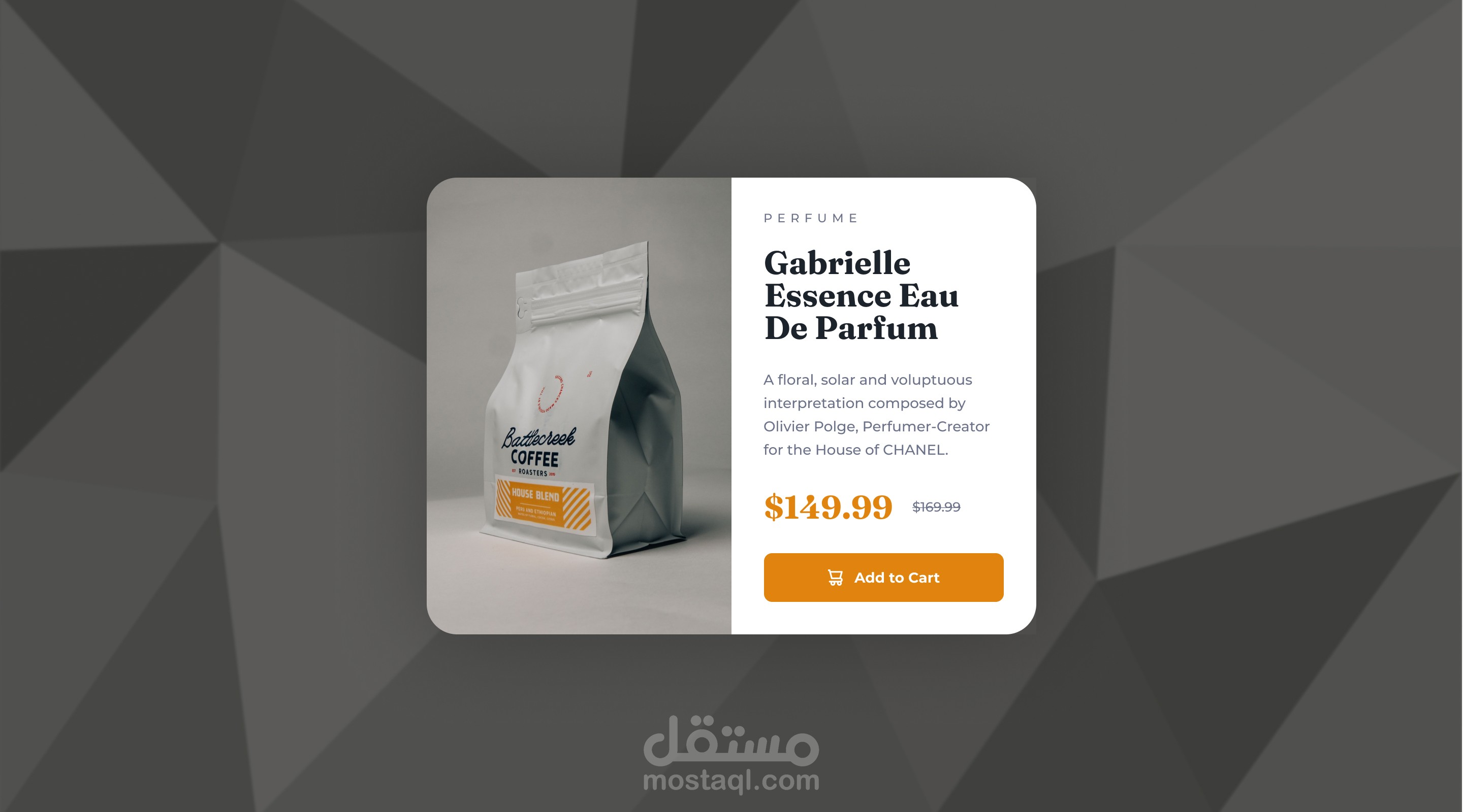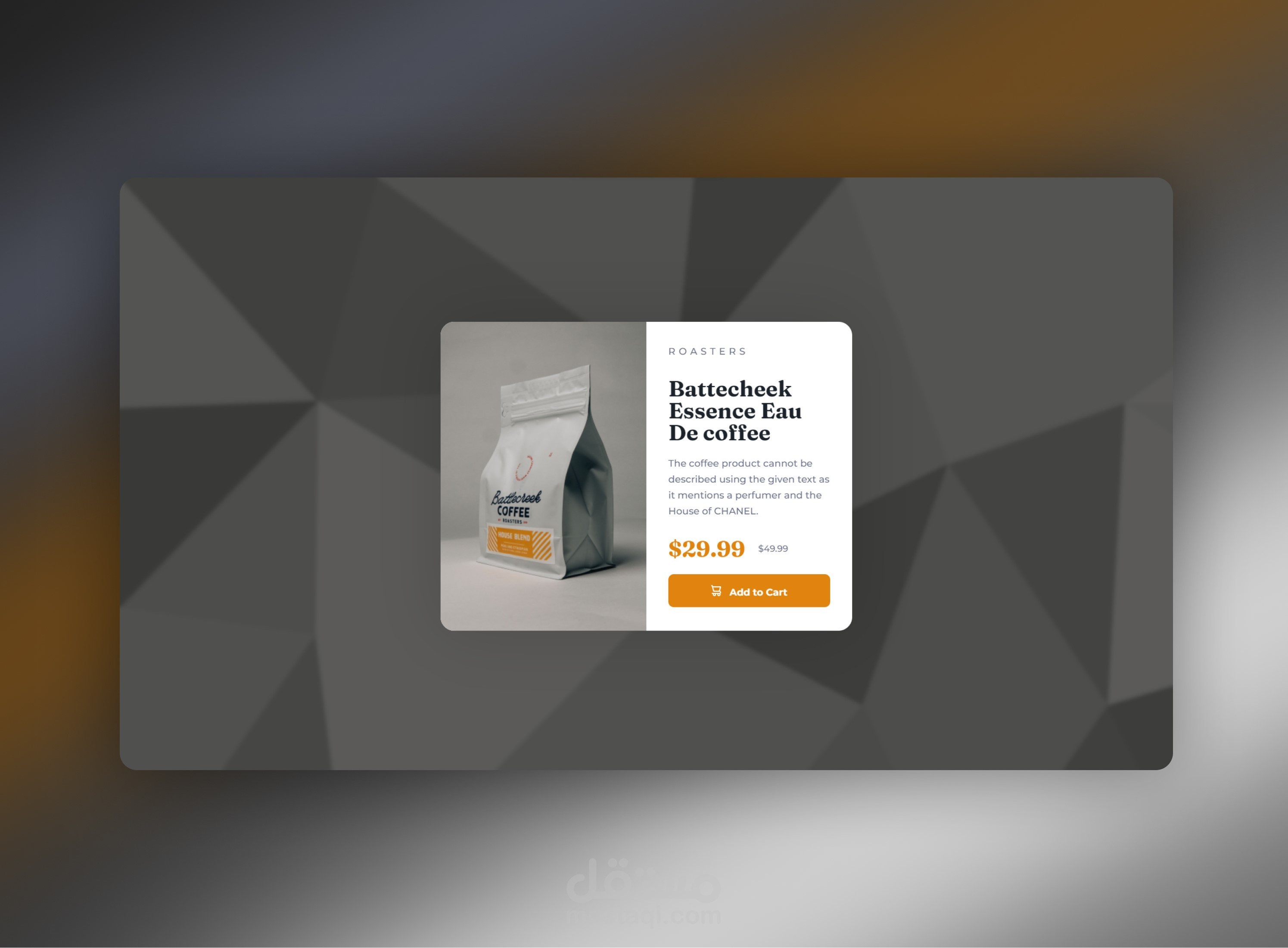 تم تطوير التصميم خصيصًا للمنتج Roasters الذي هو قهوة عالية الجودة، ويعرض معلومات مثل اسم المنتج وصورته والسعر والتقييمات وغيرها من المعلومات الهامة التي يحتاجها المستخدم لاتخاذ قرار الشراء.