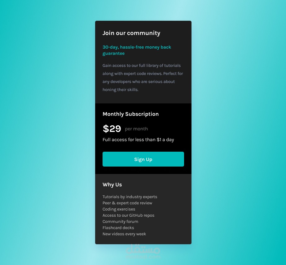 تم تنفيذ مشروع صفحة هبوط بعد تصميمه على Figma، ويتمحور المشروع حول صفحة اشتراك شهري لموقع معين. تم تصميم الصفحة بشكل جذاب وسهل الاستخدام، حيث يمكن للمستخدمين الاشتراك في خدمة الاشتراك الشهري والحصول على وصول كامل إلى محتوى الموقع. تم تحسين الصفحة لتتوافق مع مختلف الأجهزة والمتصفحات، كما تم استخدام خطوط أنيقة وواضحة للنصوص. تتضمن الصفحة أيضًا أيقونة الموقع وعلامات الـ meta اللازمة لتحسين تجربة المستخدم، وتم تنظيم هيكل الصفحة باستخدام علامات HTML ذات دلالة، مما يجعلها سهلة الفهم والصيانة. يتميز المشروع بأنه يوفر تجربة احترافية ومريحة للمستخدمين الذين يرغبون في الاشتراك الشهري في موقع معين، ويتميز بتصميمه الجذاب وسهولة استخدامه.