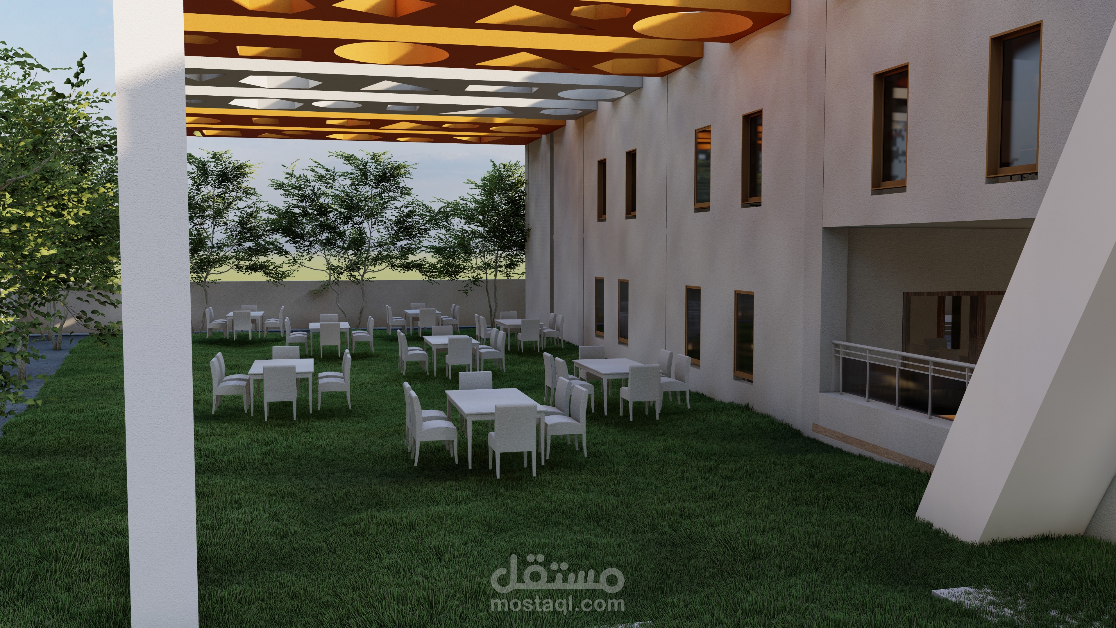 تحتوي علي مطعم متخصص علي مستوي جيدة بالاضافة الي جلسات طعام خارجية و داخلية