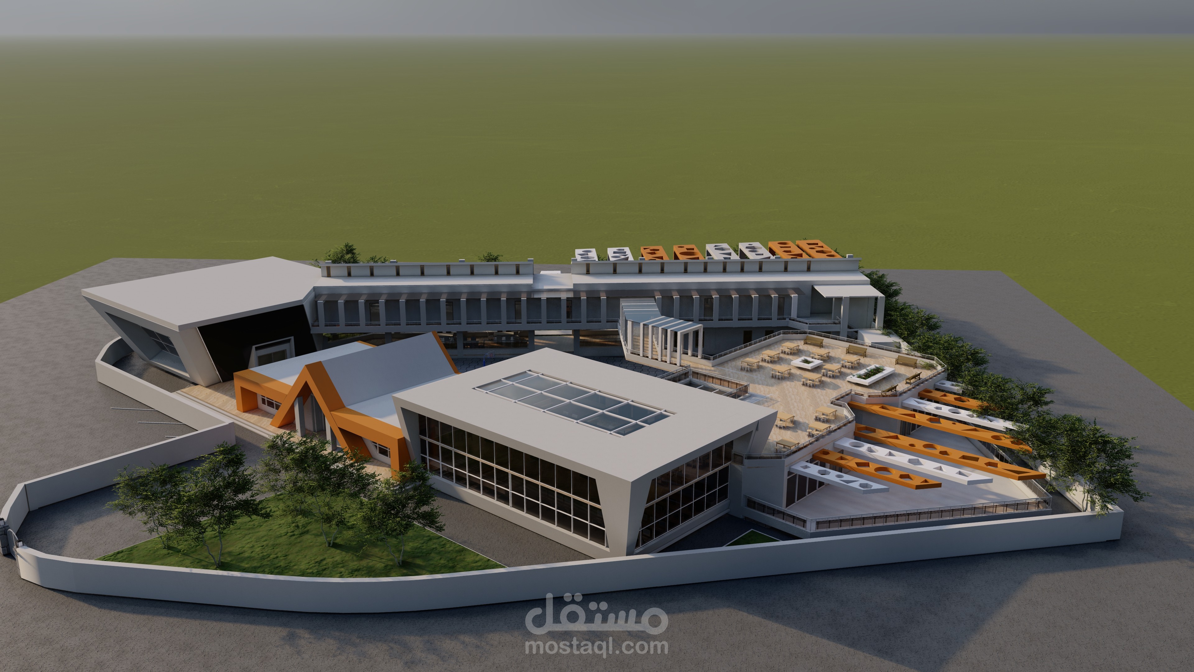 تحتوي علي ملعب و جرتج سيارات و كنتين شراء