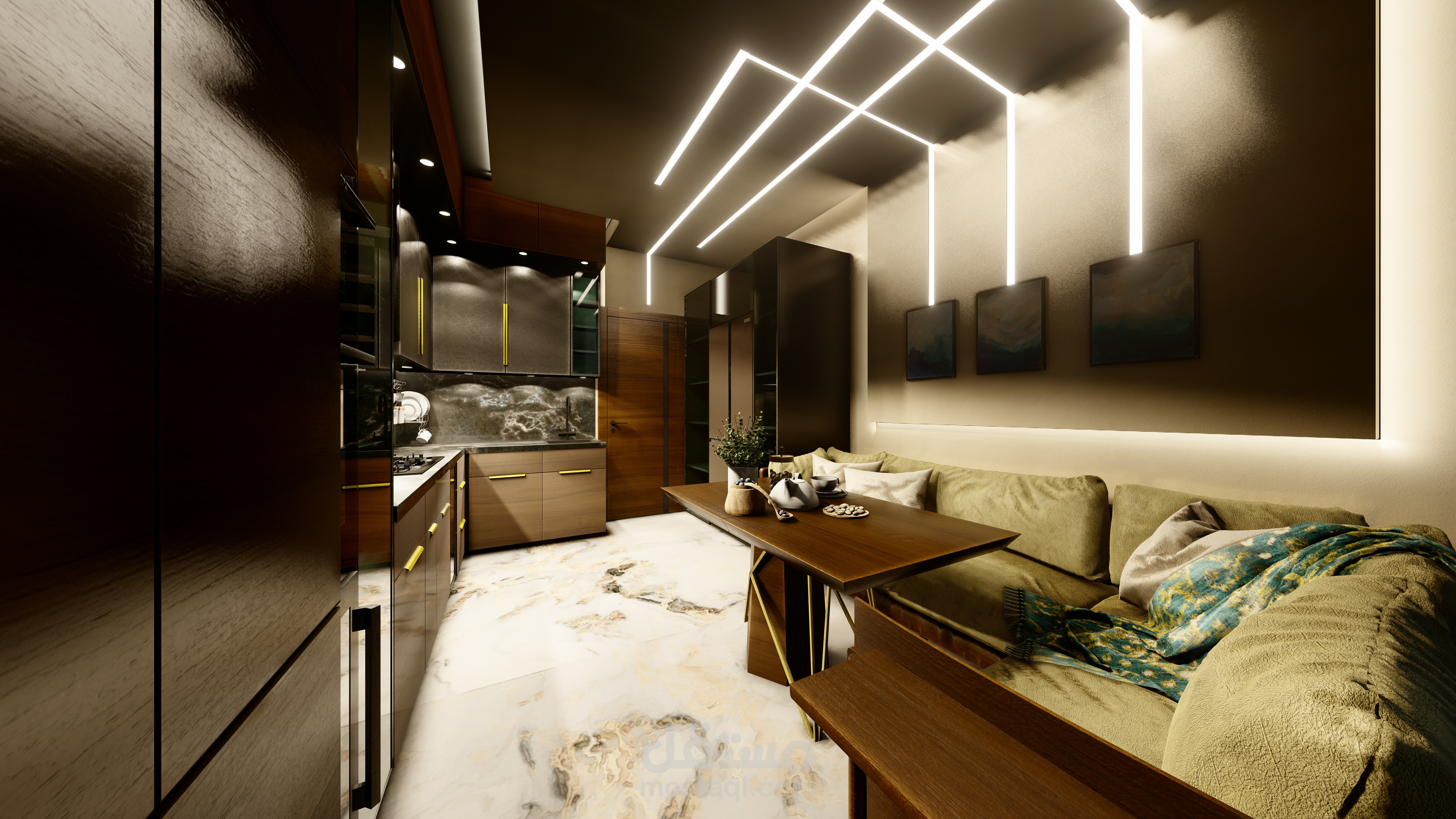 مع مطبخ بمساحة 20 متر مربع