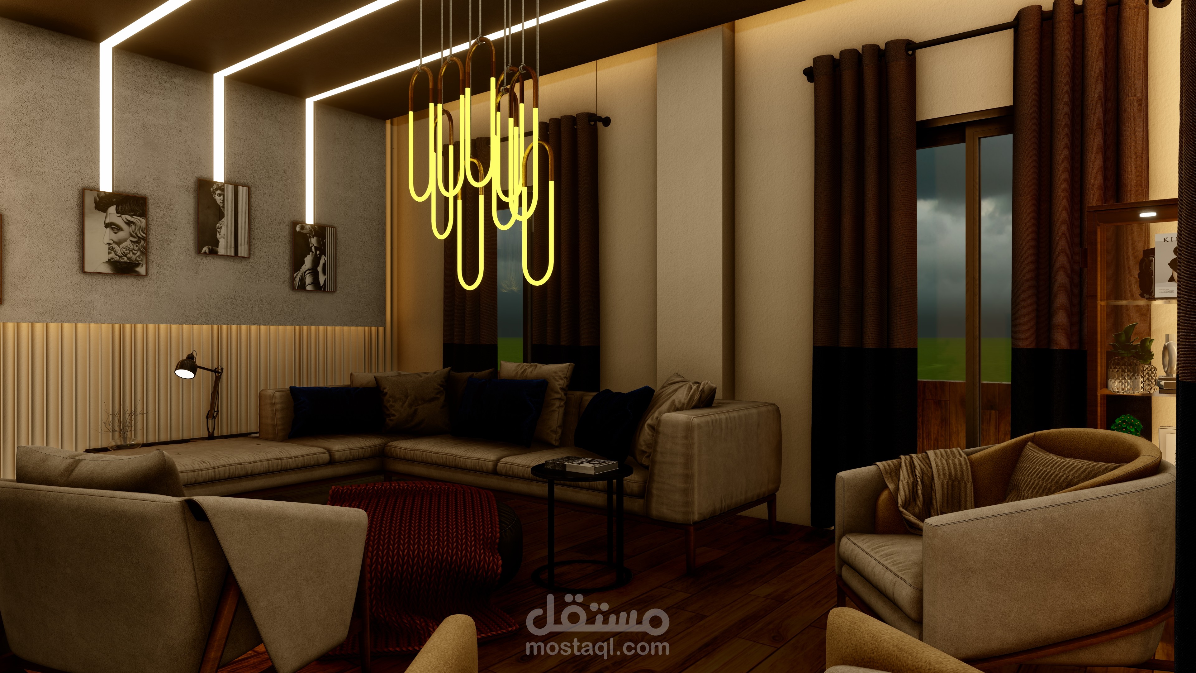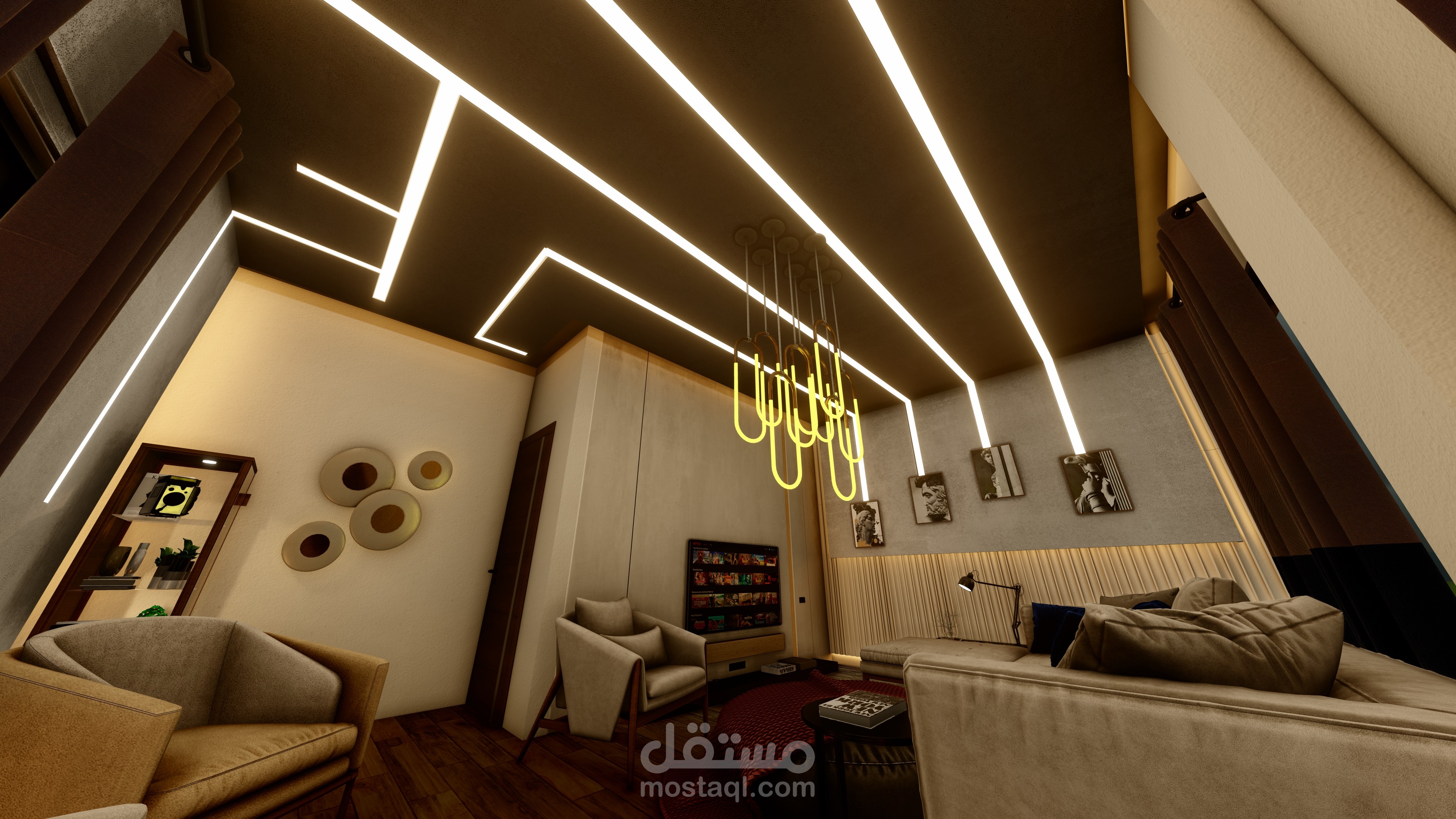 غرفة معيشة بمساحة 25 متر مربع