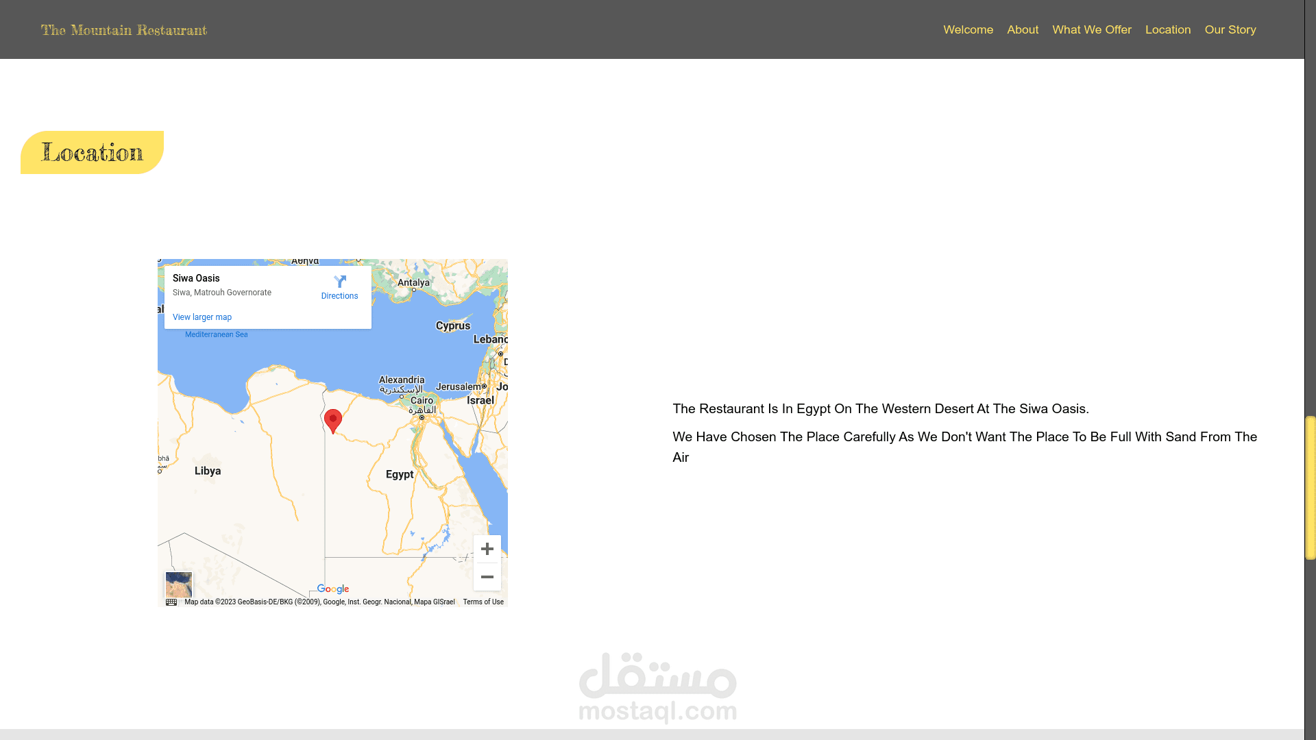 هذا المشروع عبارة عن صفحة تعريفية لمطعم في واحة سيناء بمصر.