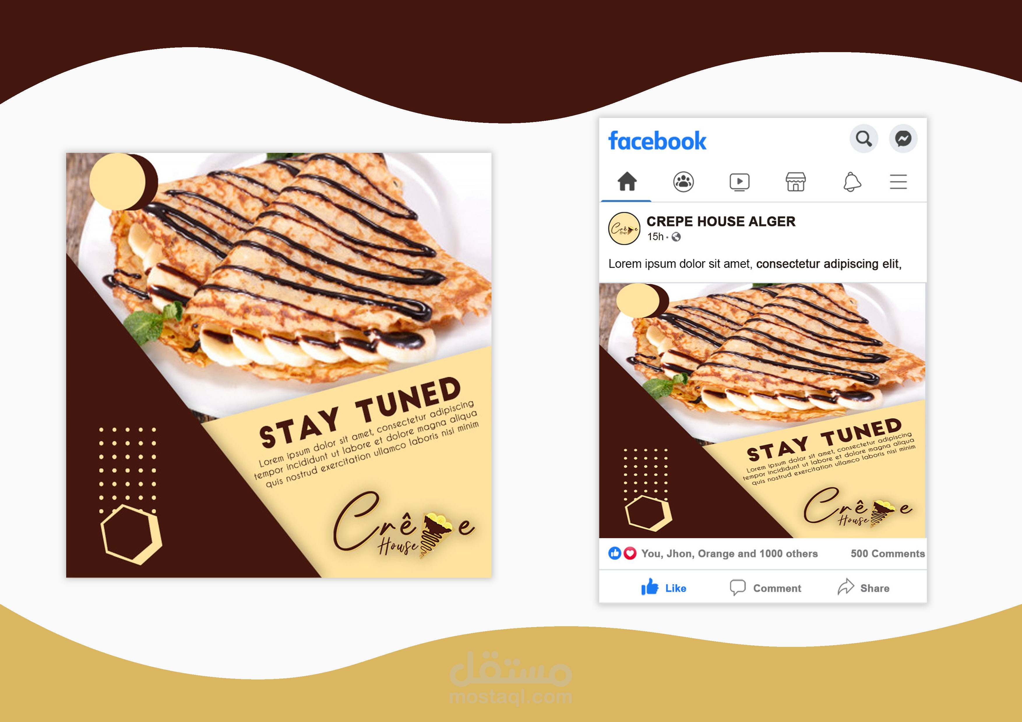 My job was to make a brand indentity for a crepe store called 'crepe house' , i made a logo, shop banner and social media posts.
